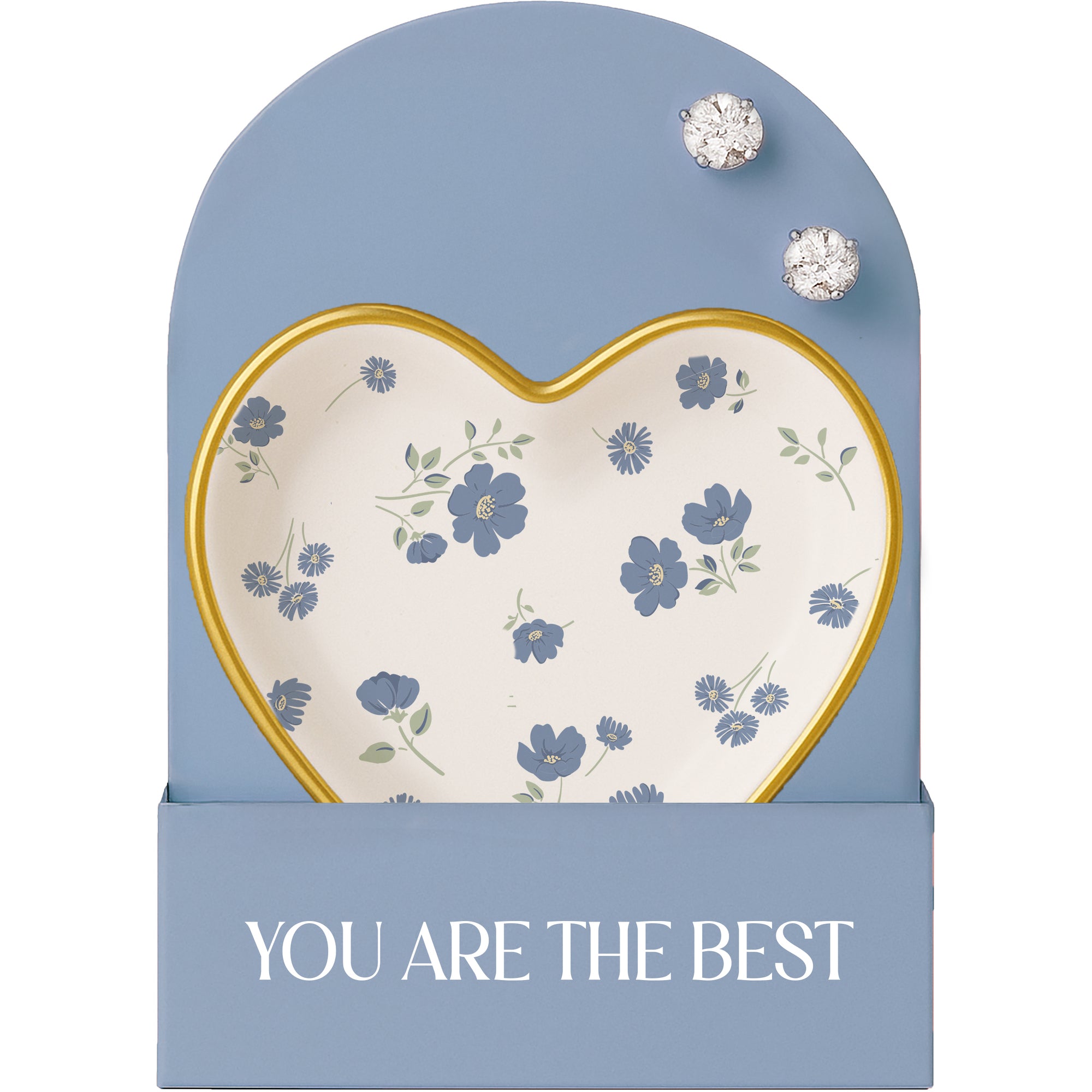 - IN-HOUSE DESIGN: Designed with calming blue florals and clean typography that reads “You Are the Best” on the coordinating navy blue gift box. The gold-rimmed dish and shimmering earrings come together for a polished, uplifting presentation — both elegant and understated.