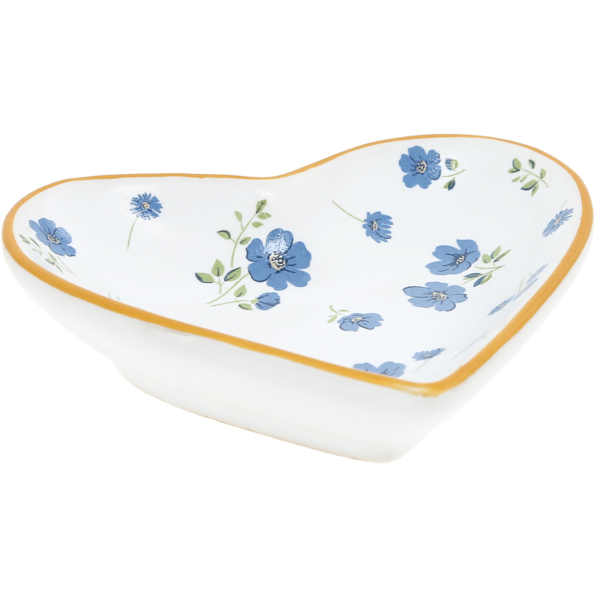 - PREMIUM QUALITY: This 2-piece set includes a glossy white stoneware heart-shaped dish featuring raised blue floral decals, a matte finish, and a hand-painted gold rim. Paired with sterling silver 5mm cubic zirconia earrings, the set offers timeless style and heartfelt meaning. Each piece is crafted for durability and long-lasting beauty.