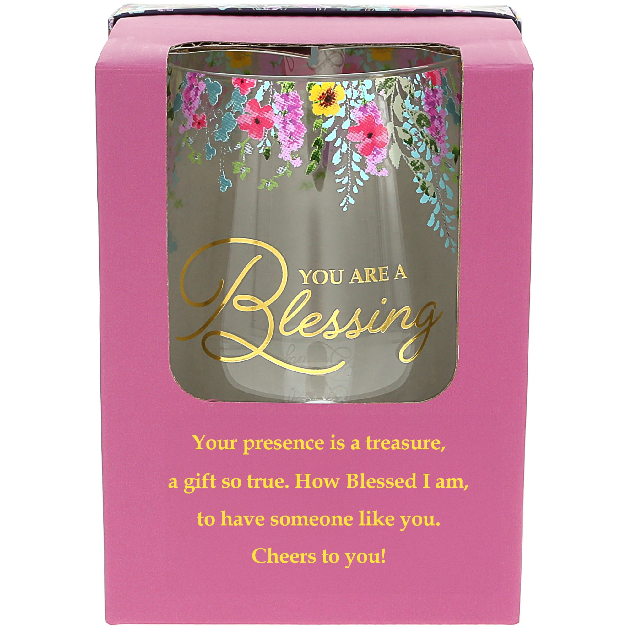 - IN-HOUSE DESIGN: The "You Are A Blessing" sentiment is elegantly showcased on the front of this glass, highlighting the special role of the recipient. It comes packaged in an open-faced pink gift box, adorned with the heartfelt message: "Your presence is a treasure, a gift so true. How blessed I am, to have someone like you. Cheers to you!" The box’s elegant design and meaningful message make it a keepsake, perfect for storing memories or gifting another special item.