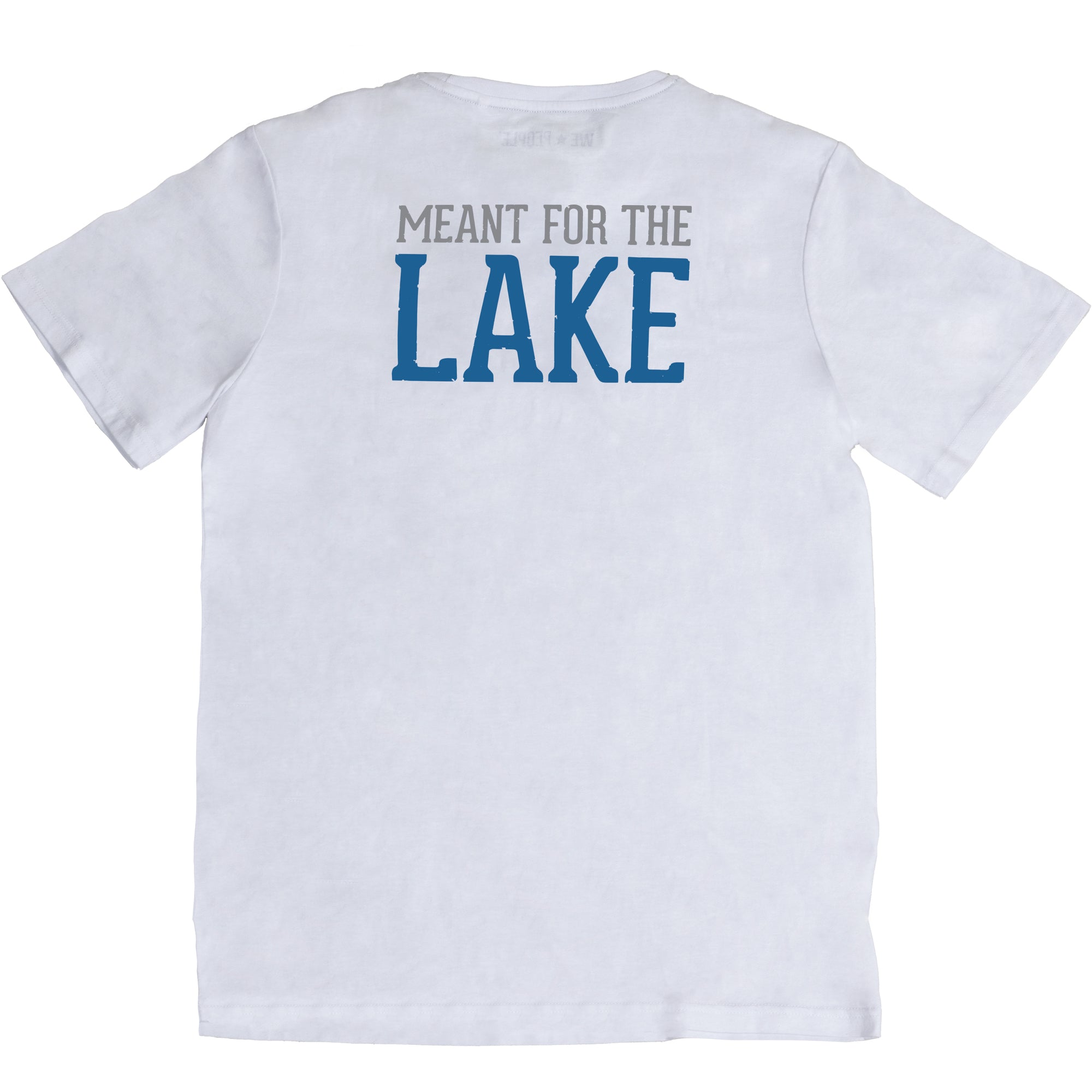 • IN-HOUSE DESIGN: The white shirt has a blue horizontal rectangular shape in the upper left chest area, which contains a white anchor & "LAKE MODE" sentiment inside an outlined design. The backside of the top has "MEANT FOR THE" in gray & "LAKE" in blue that stretches from each edge of the shoulder blade.
