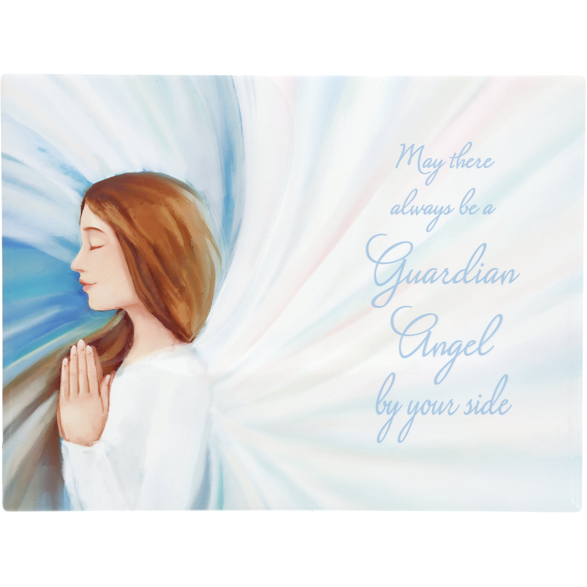 • IN-HOUSE DESIGN: From the Wings of Comfort collection, this plaque features an angel with folded hands and gentle wings sweeping across the design. The phrase “May there always be a Guardian Angel by your side” is written in graceful script, complemented by soft pastel tones that symbolize light, faith, and protection.