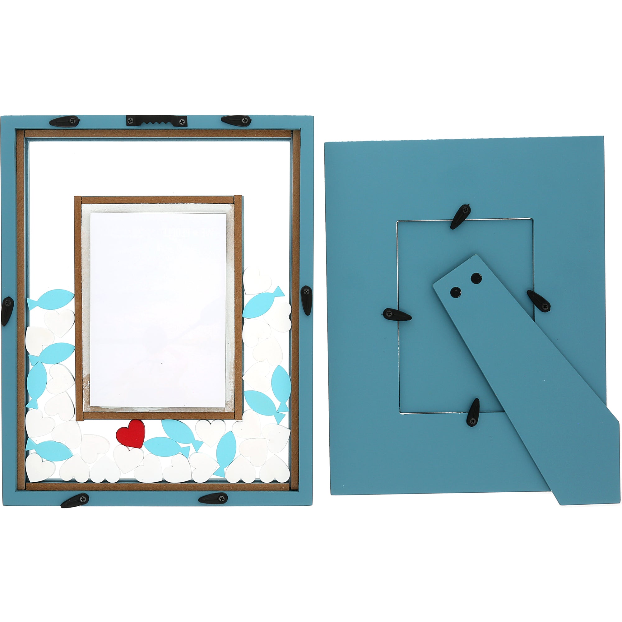 - PREMIUM QUALITY: This 8” x 10” MDF and glass frame is designed to preserve and highlight your most treasured riverside memories. Holding a 3.5” x 5.5” photo, it features floating 3D fish and hearts, making it an engaging and visually appealing display piece. The sturdy materials ensure durability, and the interactive design brings the tranquility of the river into your home. Packaged in a kraft die-cut box for safe shipping and effortless gifting.