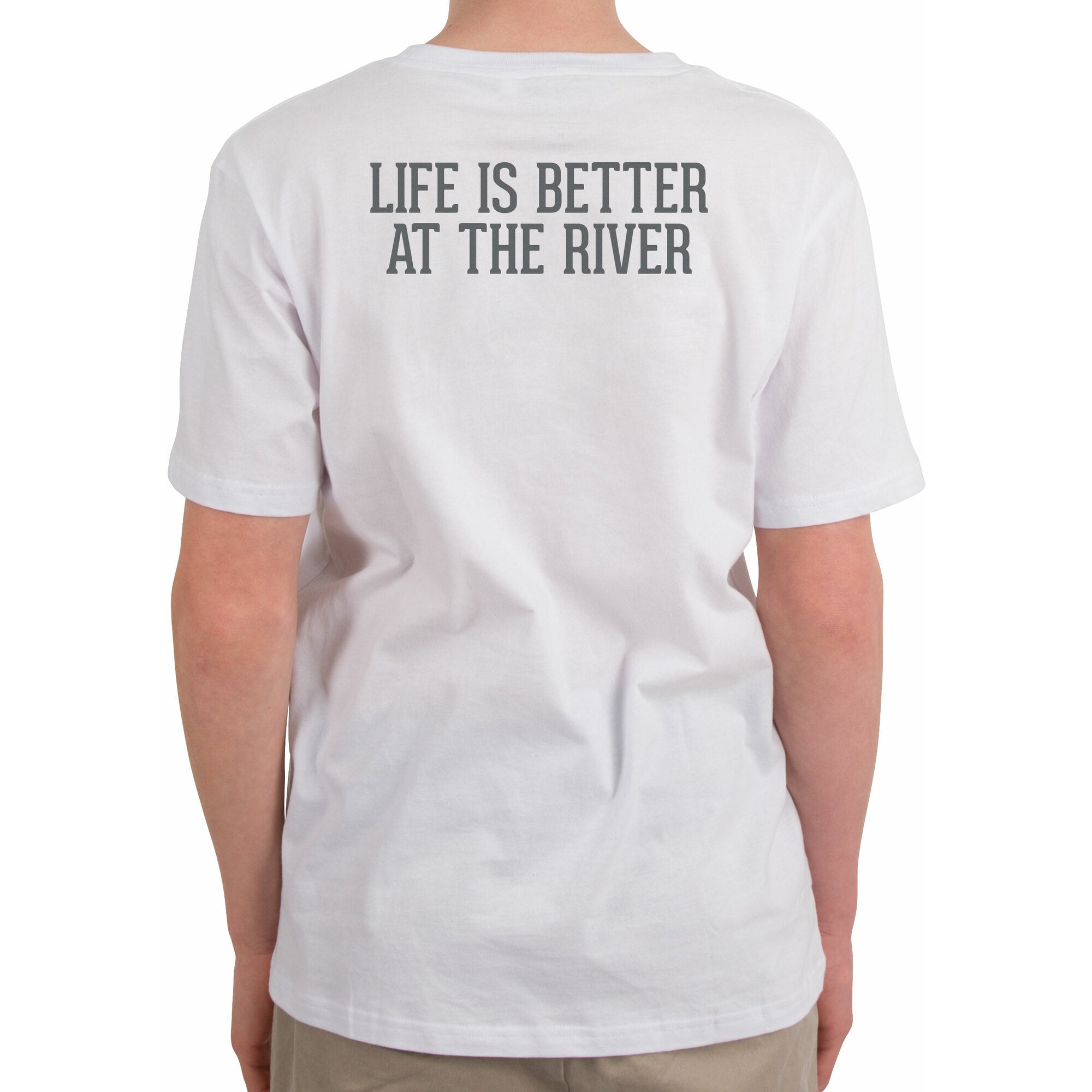 - IN-HOUSE DESIGN: "River People" logo is printed on the front of the shirt, as is the "Life is Better At The River" text on the back.