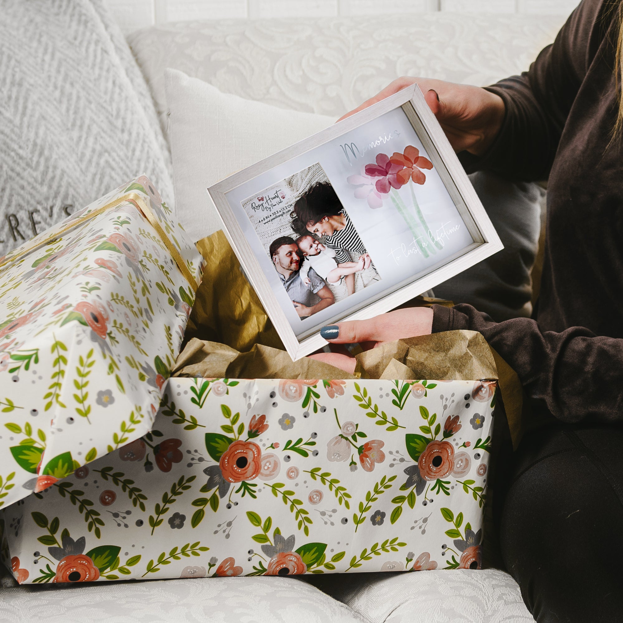 - IN-HOUSE DESIGN: The glass front has the electroplated silver text "Memories to last a lifetime" accompanied by pink, orange, and purple flowers design. The backing is made from thick cardboard-like material with a metal hinged easel and triangle hanger for displaying and two metal tabs for photo replacement.