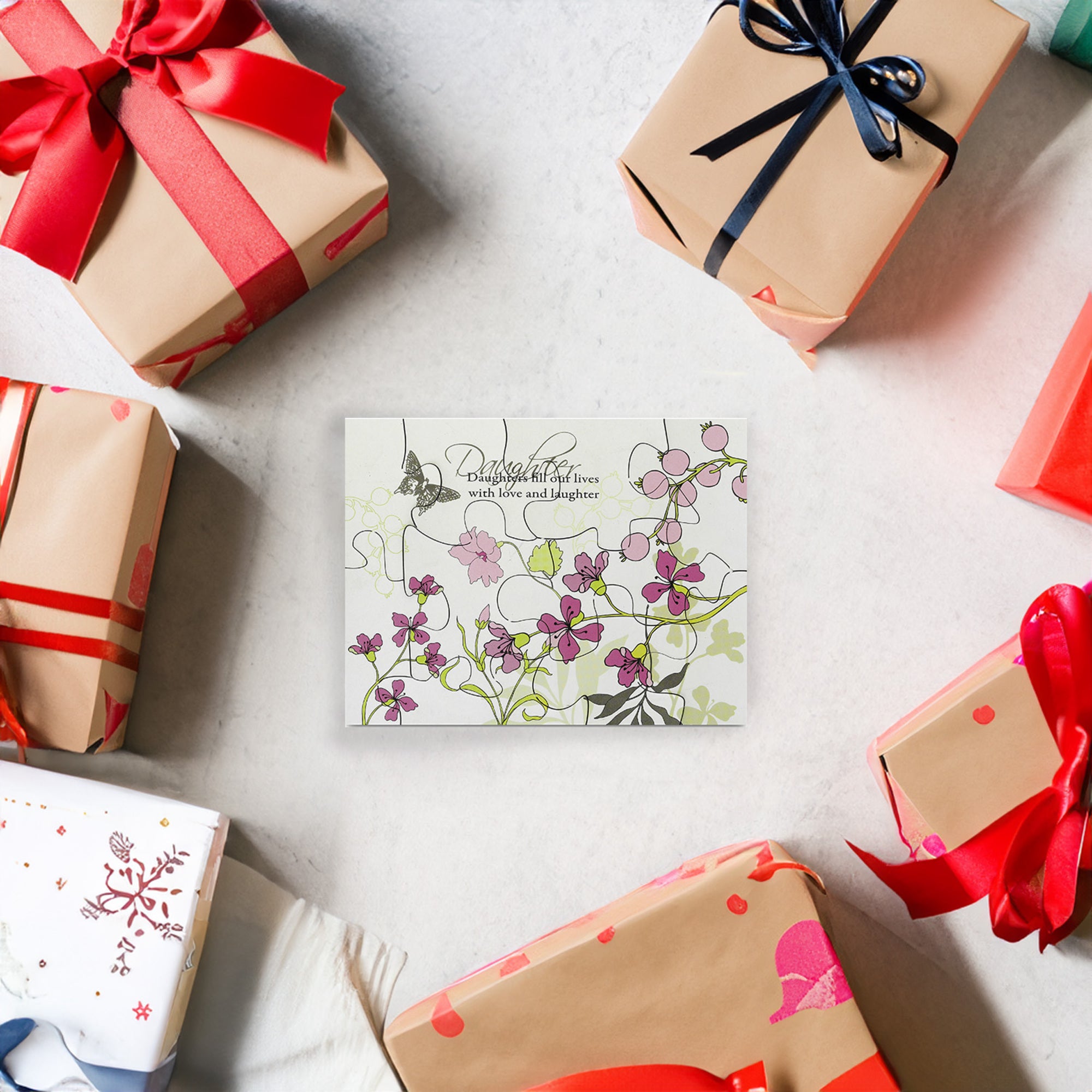 - IN-HOUSE DESIGN: This charming floral magnet features a delicate vine and blossom pattern in vibrant pink and green hues, symbolizing growth, love, and joy. The sentimental inscription, "Daughters fill our lives with love and laughter," is elegantly scripted in a classic cursive font, making this a timeless keepsake that celebrates the special bond between a parent and daughter.