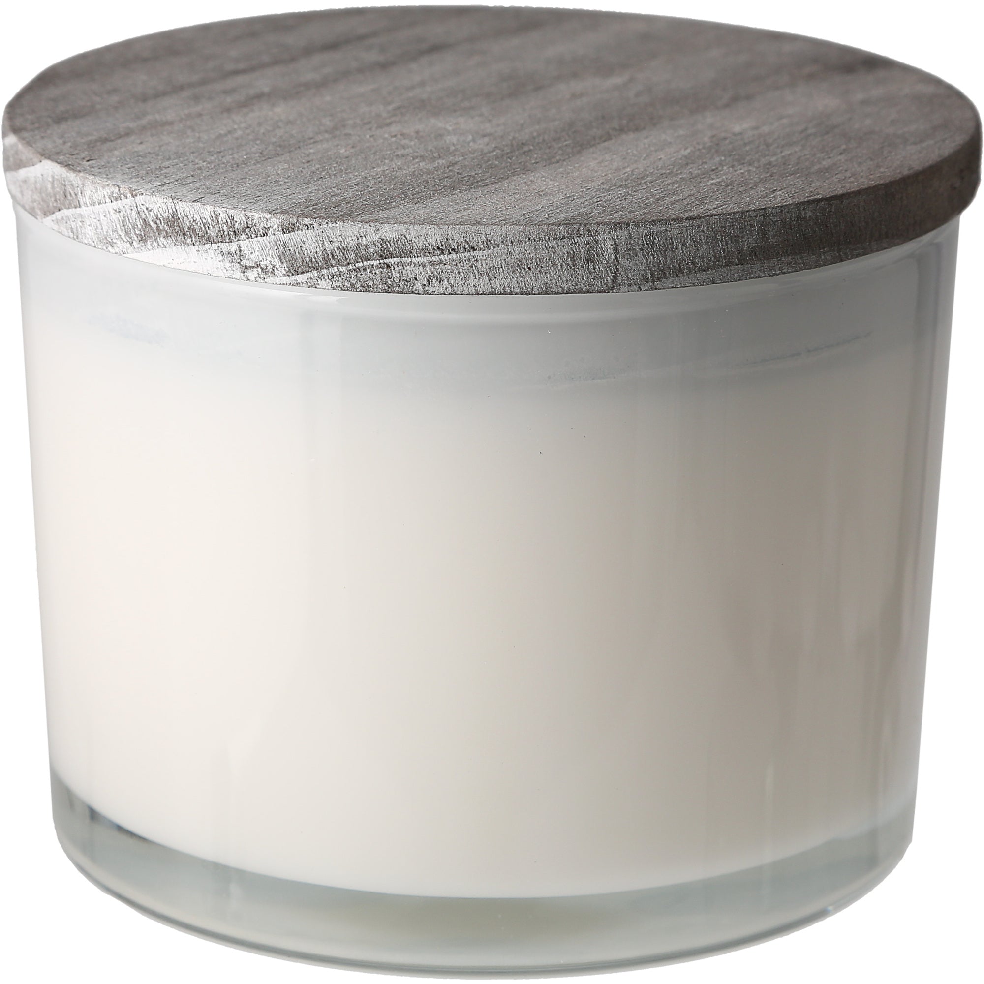 - PREMIUM QUALITY: Round jar candle with three 100% cotton, lead, and nickel-free wicks. The wax is fresh cotton scented and burns for up to 20 hours. The wooden lid of this relaxing candle features a silicone ring for an air-tight scent hold. Measures 4" wide x 3" inches tall holding 11 oz of 100% soy wax. Packaged safely in a die-cut box with a plastic wax protector.