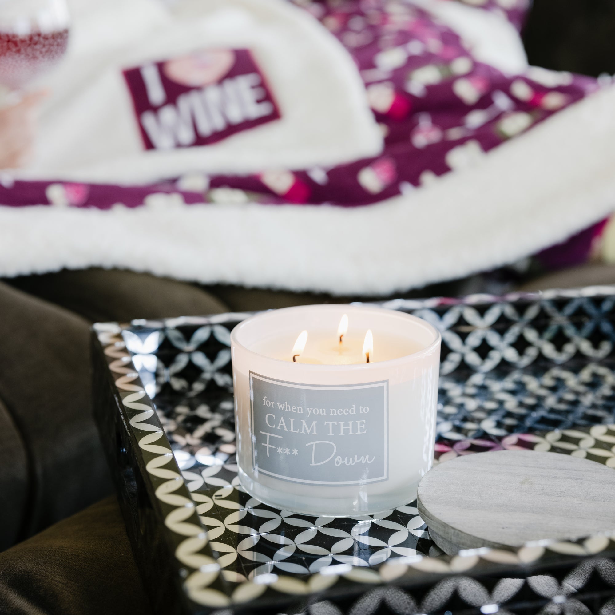 - IN-HOUSE DESIGN: "For When You Need To Calm The F*** Down" sentiment decal on the front side of the glass vessel. The artwork was created with a simplistic neutral look to fit into anyone's home!