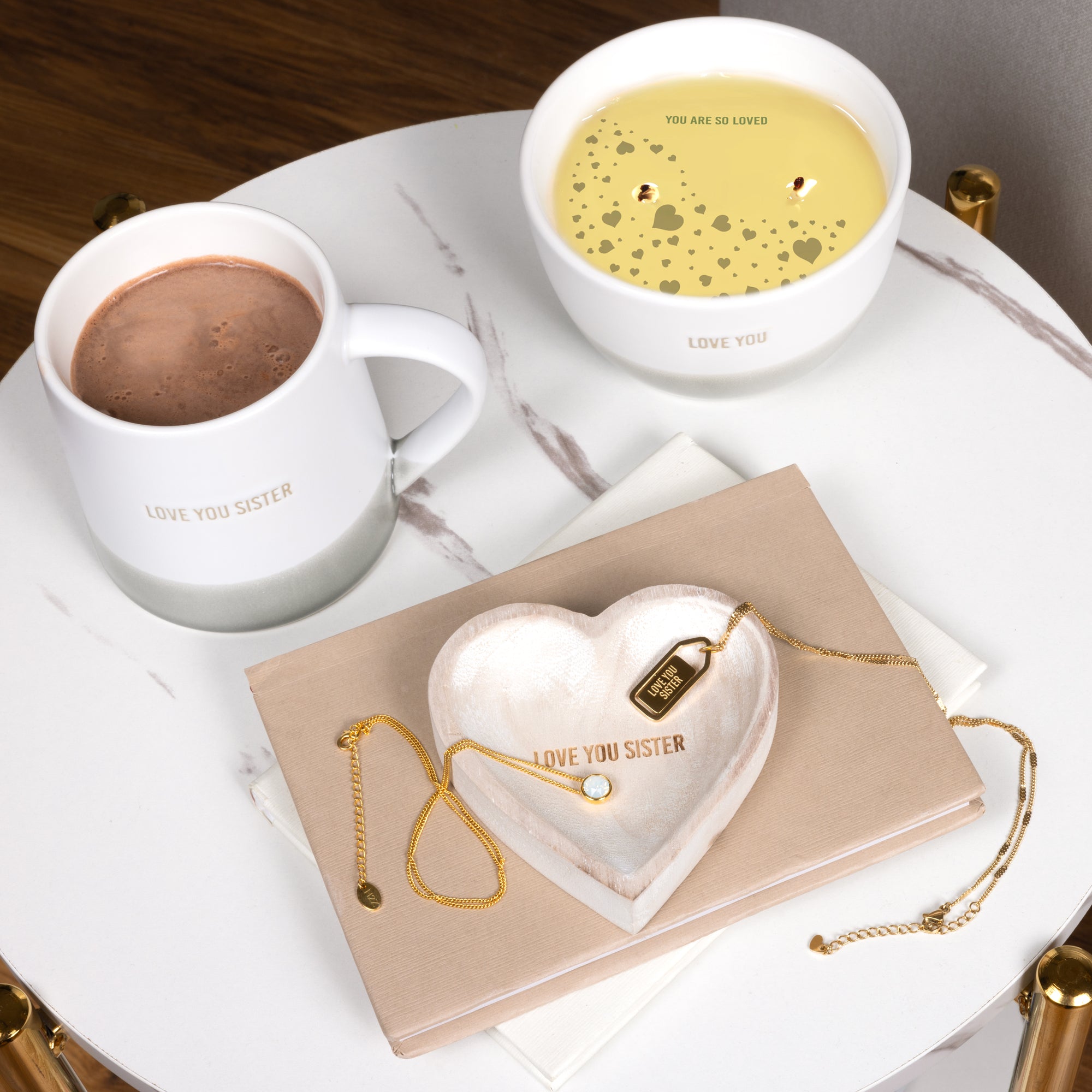 - IN-HOUSE DESIGN: One side of the necklace's 1.25" pendant has a "Love You Sister" sentiment debossed, whereas the other has a shell pearlescent accent. Depending on the day or outfit, the necklace can be rotated either way.