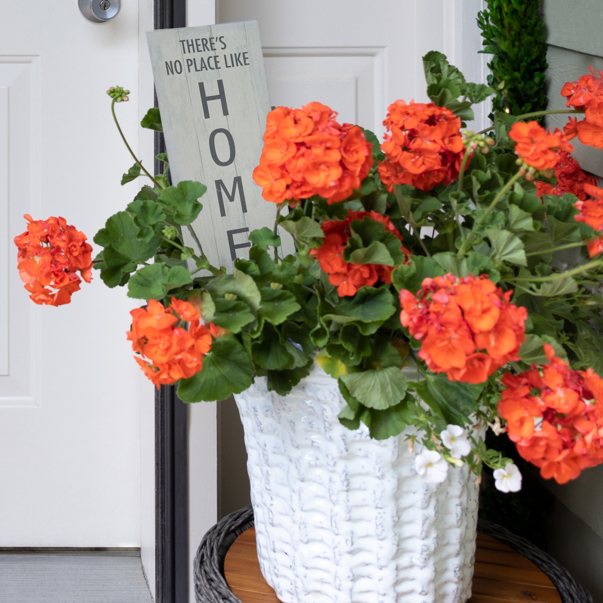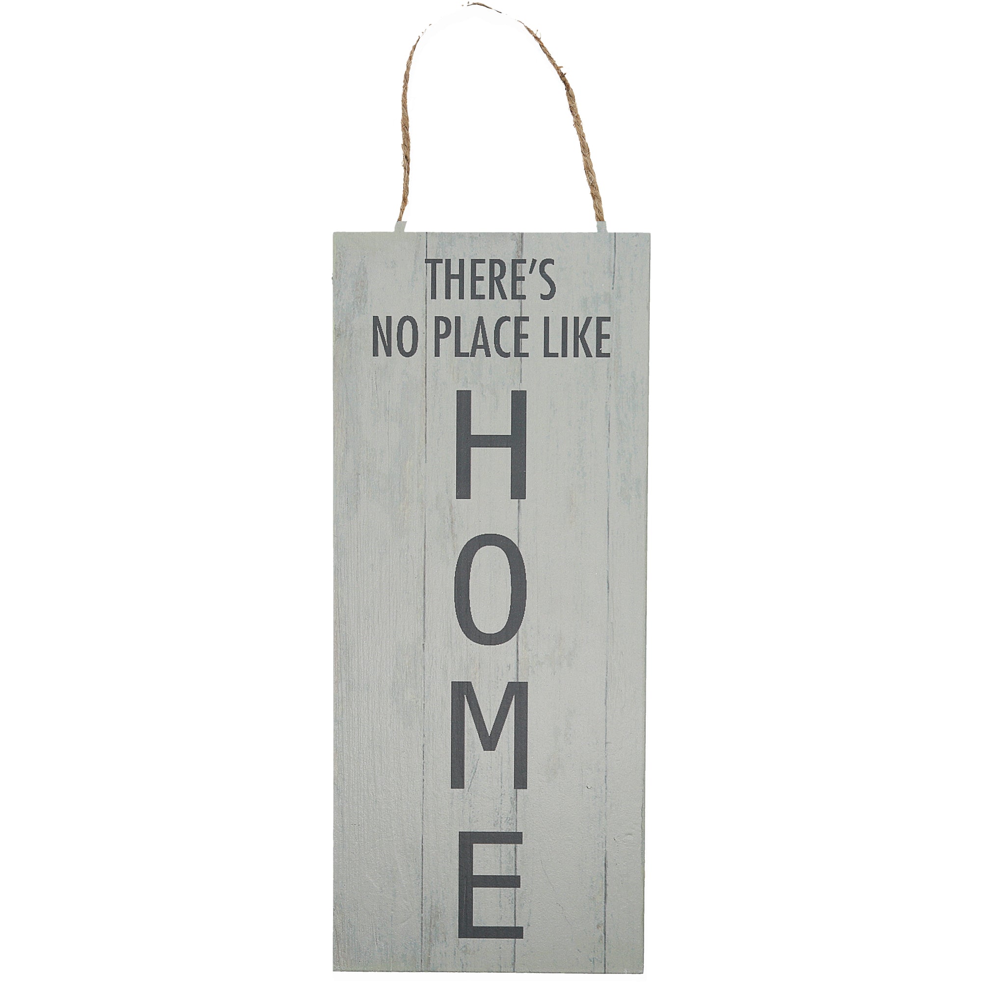 • IN-HOUSE DESIGN: The warm gray rustic-finished textured four-section boarded front has a glossy gray "There's No Place Like Home" sentiment decal. The flat-backing has a natural pine finish.