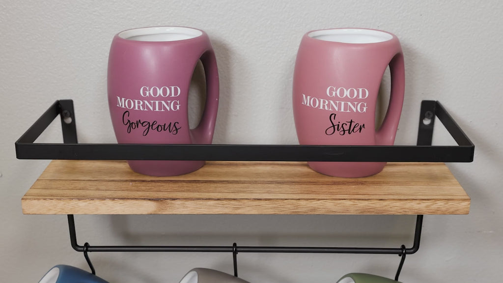 - IN-HOUSE DESIGN: "Good Morning Sister" text is printed on the front of the mug.