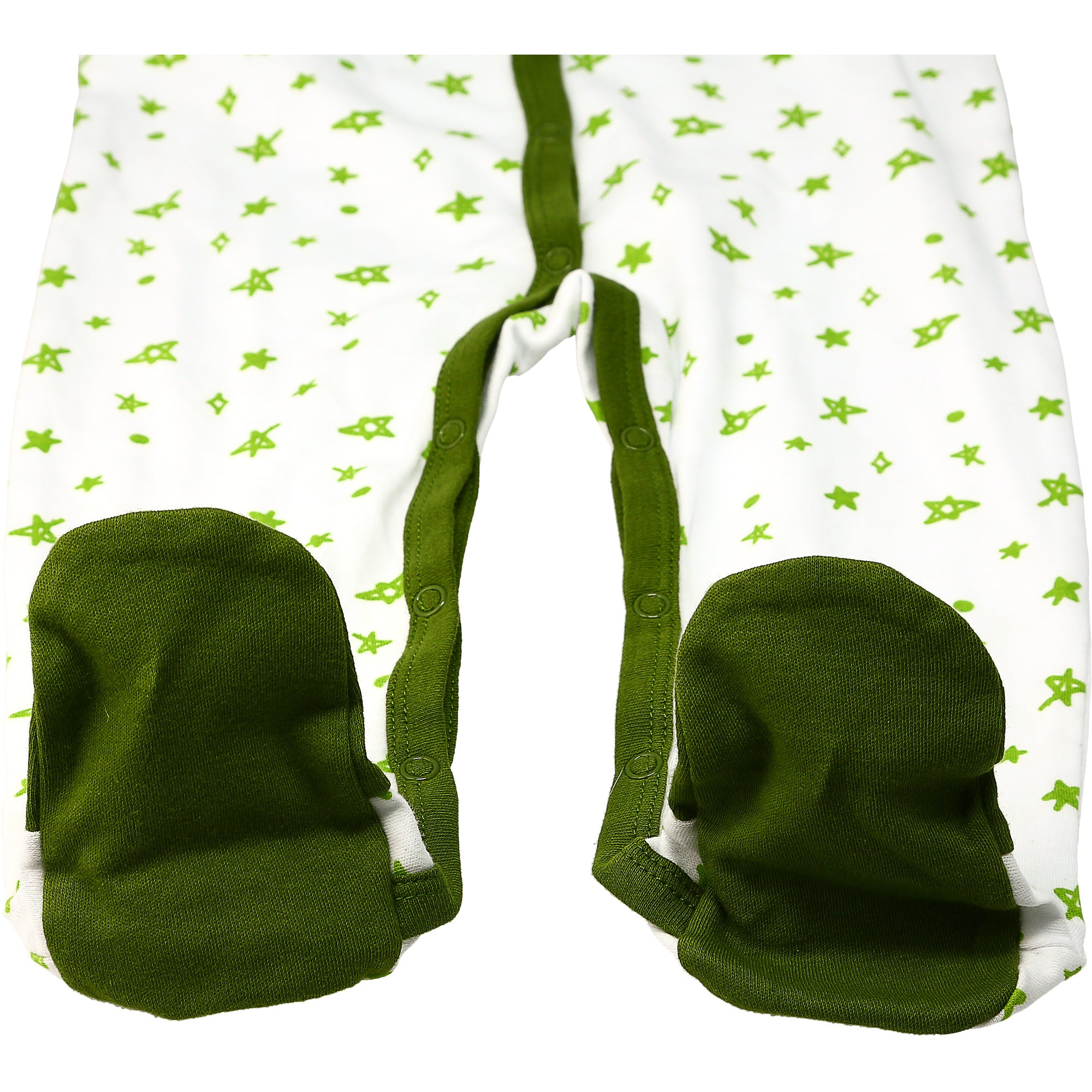 - PREMIUM QUALITY: 0-6 month, long-sleeved bodysuit sleeper is made from 100% cotton with close-toed built-in sock feet and fold-over hand mitts to protect your little one from scratching their face/eyes. 13 metal snap front closure. Also available in a 6-12 month size without the fold-over mitts. Packaged in a plastic polybag with hangtag and plastic hanger.