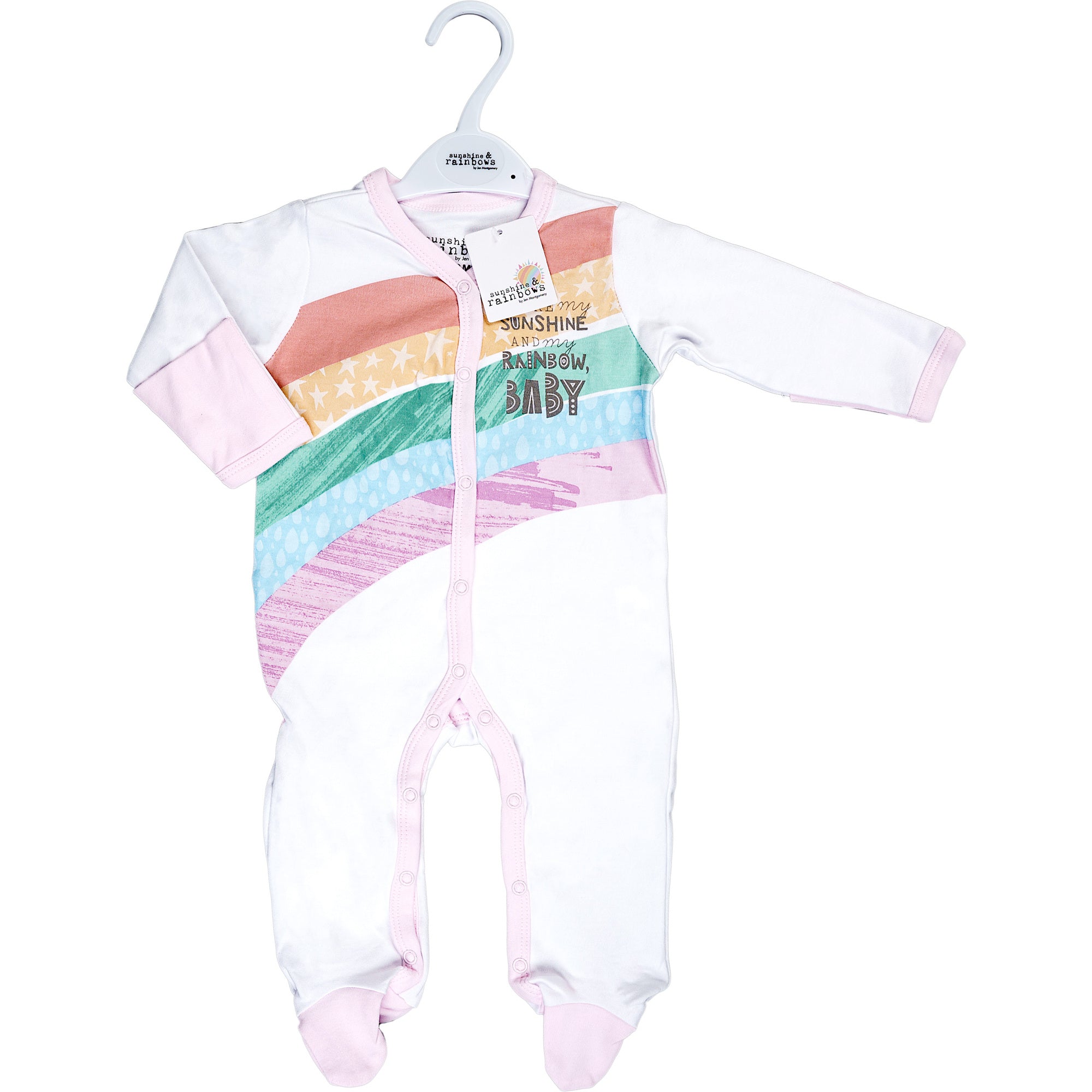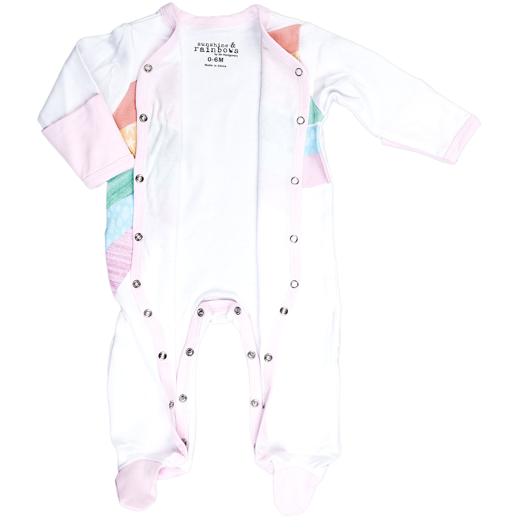 - IN-HOUSE DESIGN: "You're My Sunshine And My Rainbow, Baby" text is printed onto the front of the sleeper.