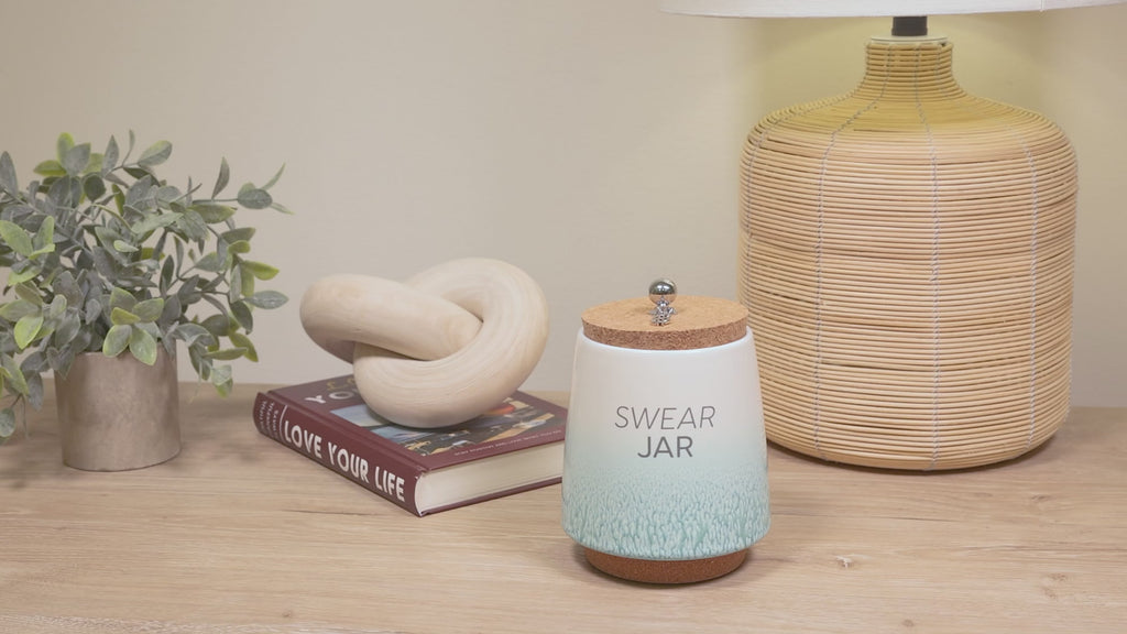 - IN-HOUSE DESIGN: The front side of the piggy bank has a simplistic "Swear Jar" gray sentiment and an ombre glossy reactive dripped speckling glaze that fades from white at the top to teal at the bottom. The interior of the jar features fill lines accompanied by sentiments that are .75 inches from one another. The very bottom line "Not Enough Fund$" goes up to 1.5 inches from the base, followed by "Getting There," leading to "So Much Fund$" with "Fully Funded" at the top.