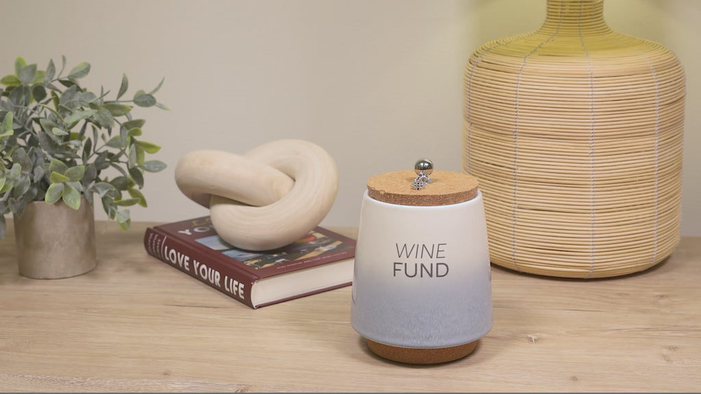 • IN-HOUSE DESIGN: The front side of the piggy bank has a simplistic "Wine Fund" gray sentiment and an ombre glossy reactive dripped speckling glaze that fades from white at the top to blue at the bottom. The interior of the jar features fill lines accompanied by sentiments that are .75 inches from one another. The very bottom line "Not Enough Fund$" goes up to 1.5 inches from the base, followed by "Getting There," leading to "So Much Fund$" with "Fully Funded" at the top.