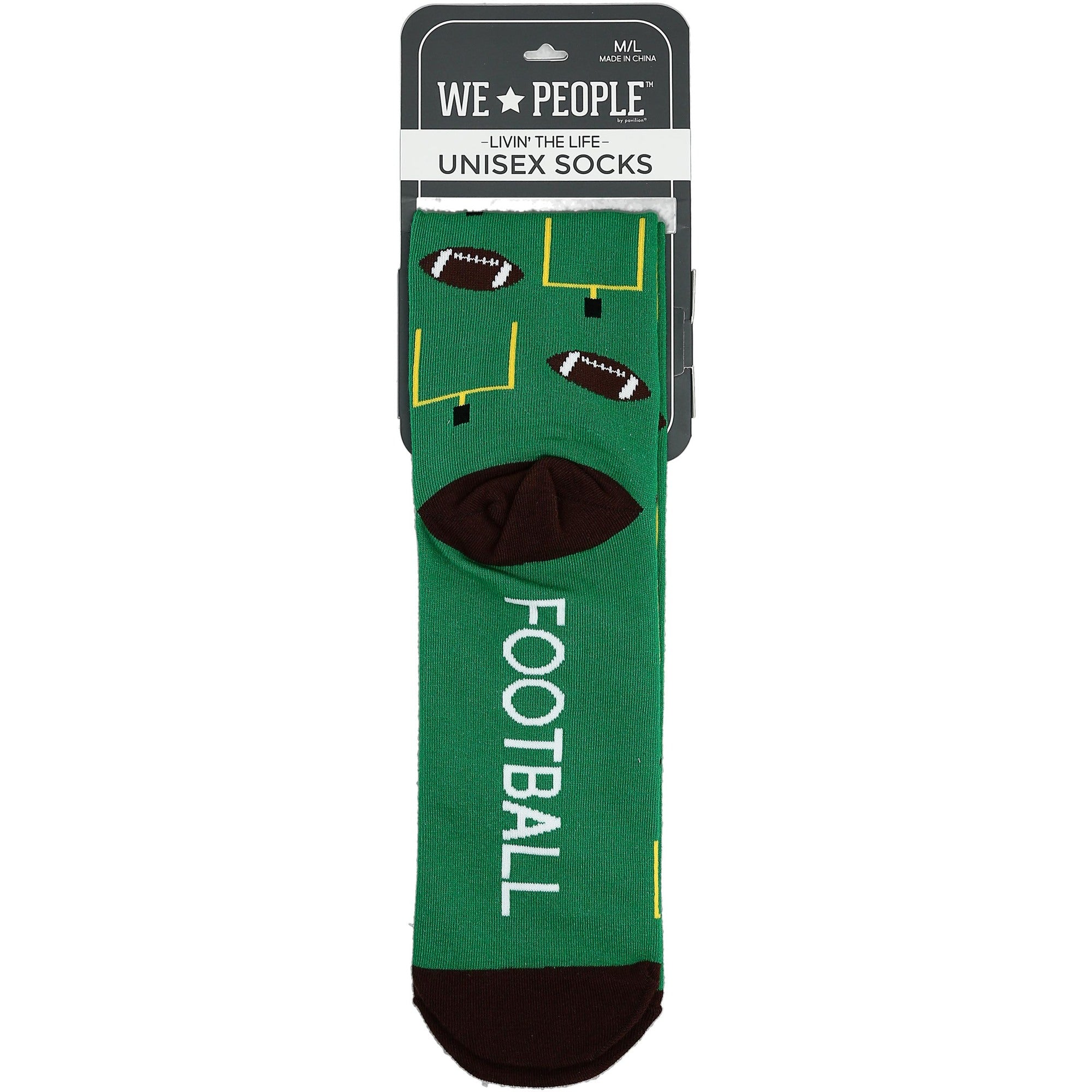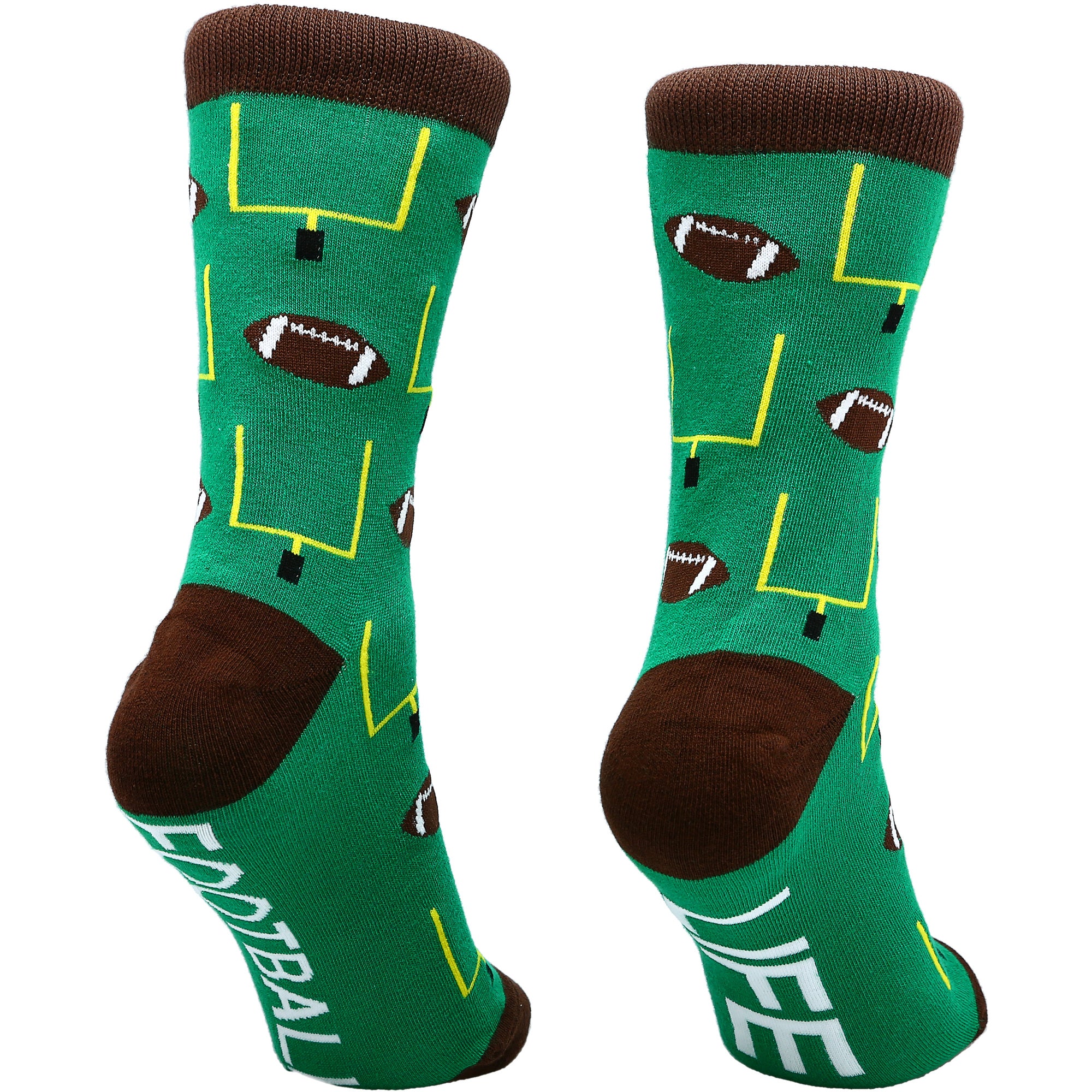 - IN-HOUSE DESIGN: "Football Life" text is sewn into the base of the socks while a football and field goal post pattern covers the rest.