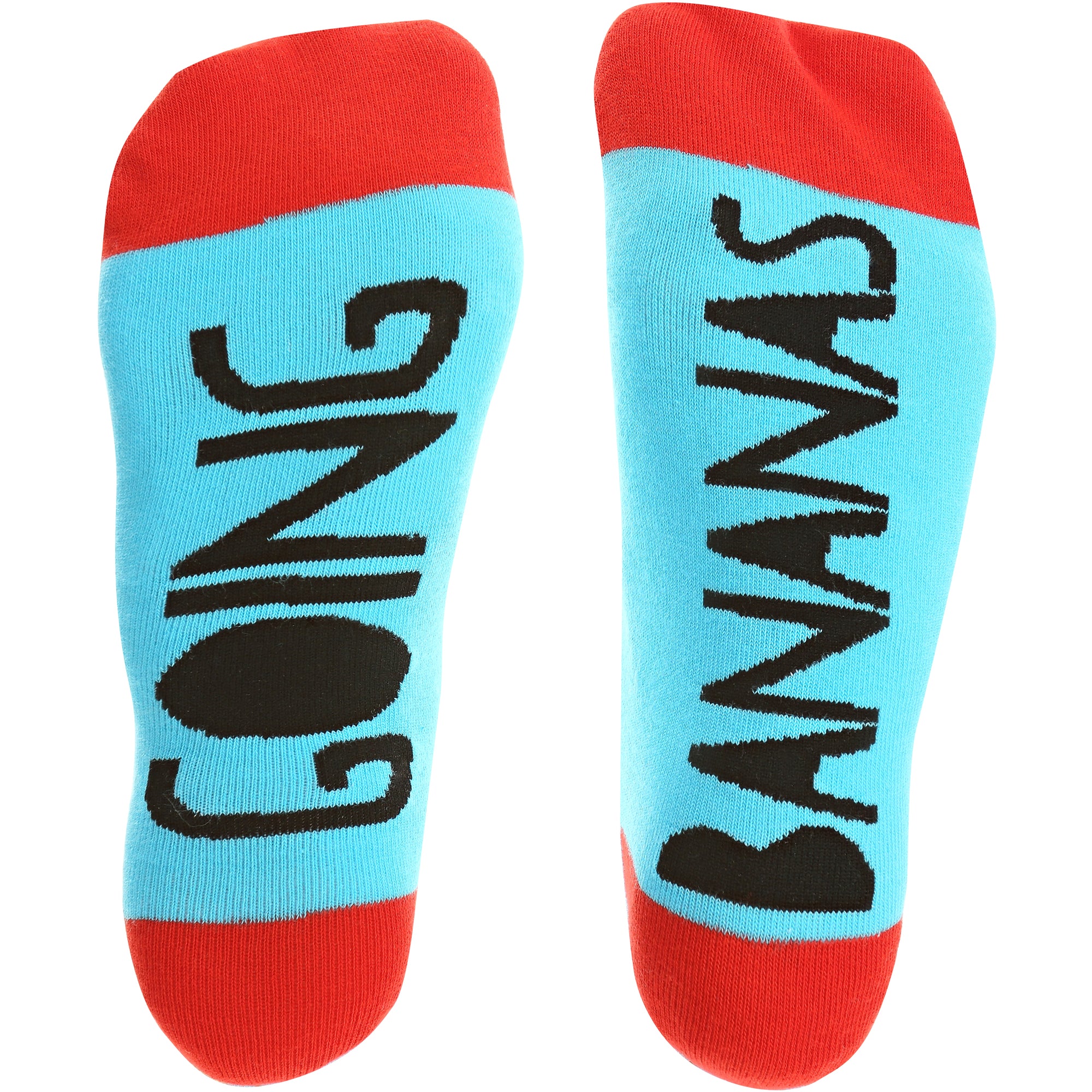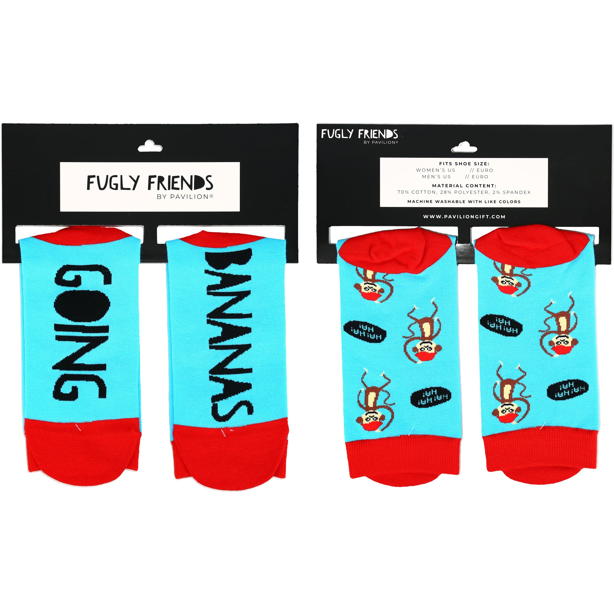 - IN-HOUSE DESIGN: "Going Bananas" text is sewn into the base of the socks and is accompanied by a monkey pattern with "Ha! Ha! Ha!" text.