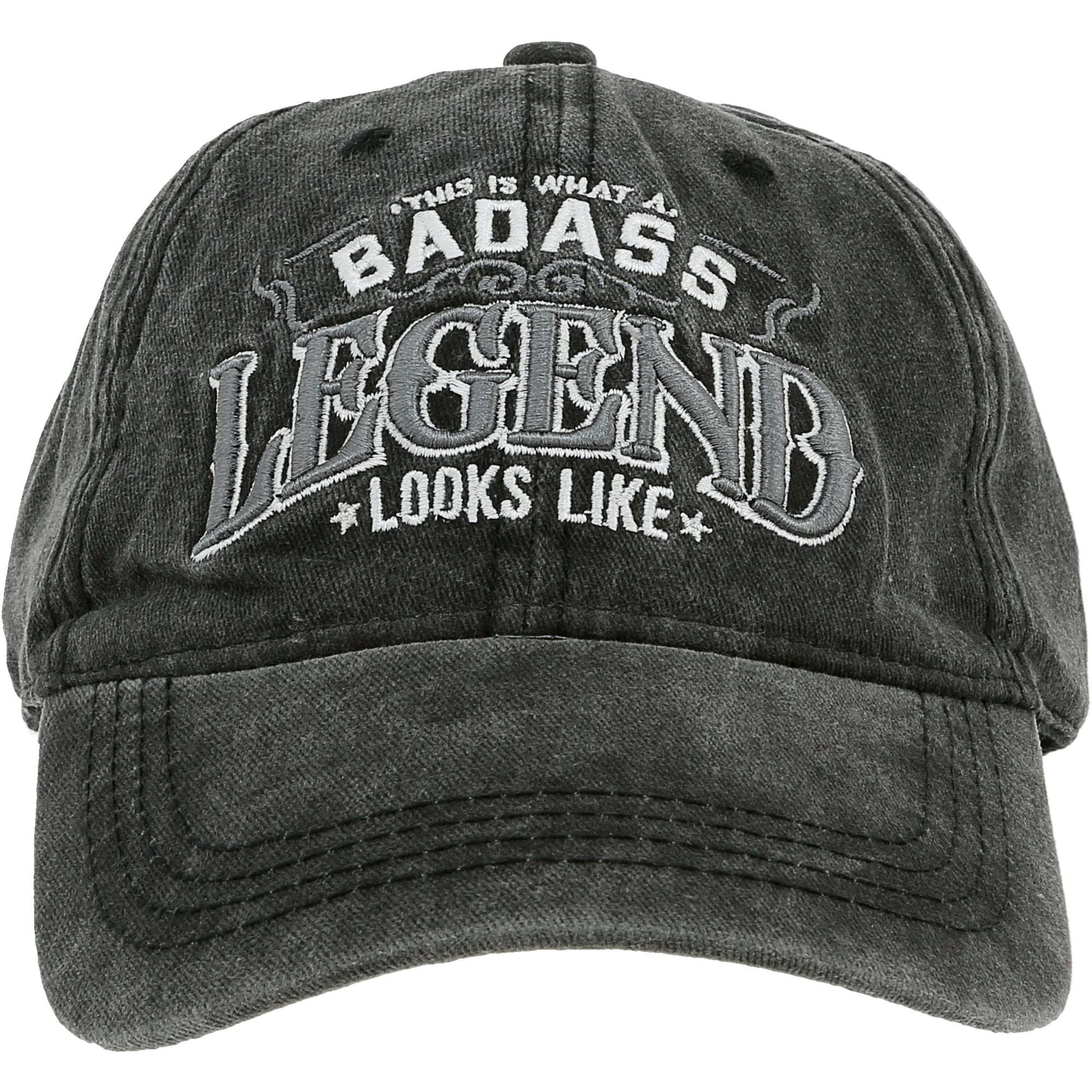 - PREMIUM QUALITY: Made from 100% cotton, this black washed hat is built for those who embody badassery. The sentiment "This is What a Badass Legend Looks Like" is embroidered in bold white and gray.