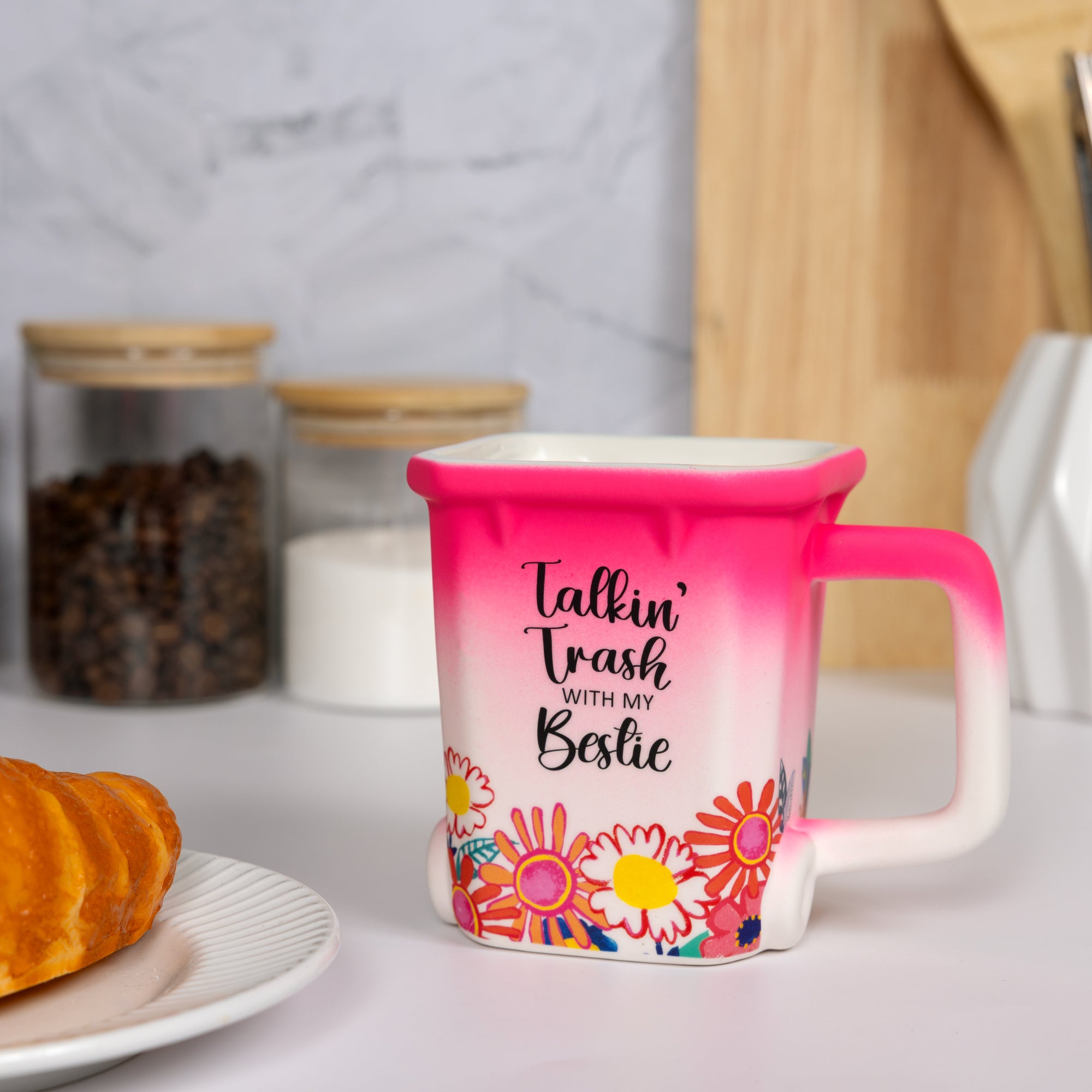 - IN-HOUSE DESIGN: Part of the Pretty Happy Girl collection, this mug features the phrase “Talkin’ Trash with My Bestie” printed in playful black typography surrounded by colorful blooms. Designed to celebrate fun, laughter, and friendship, this mug radiates energy and personality—just like your best friend.