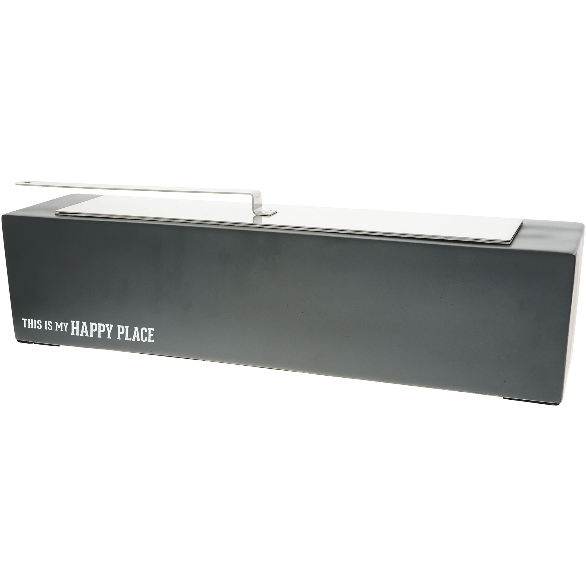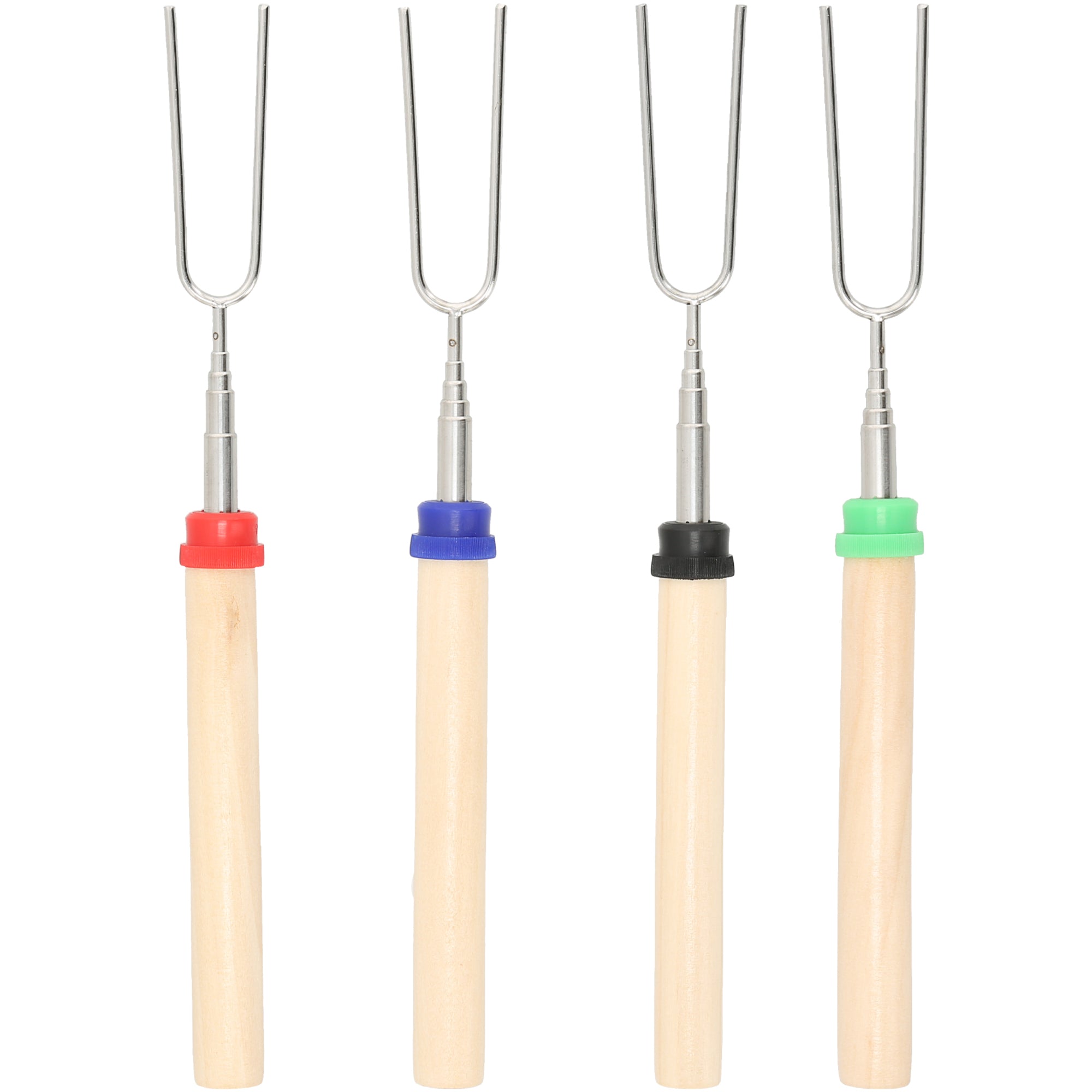 - IN-HOUSE DESIGN: The dark gray smooth surface bears a "This Is My Happy Place" white sentiment in the bottom right corner on the front of the vessel. The four extendable double-pronged stainless steel and wood roasting stick skewers have telescopic ends that expand between 4" and 19.5", plus the 4" long x .5" wide wooden handle. The plastic red, black, blue, and green indicators are great for a family, couple, or group of friends to choose while roasting marshmallows for s'mores.