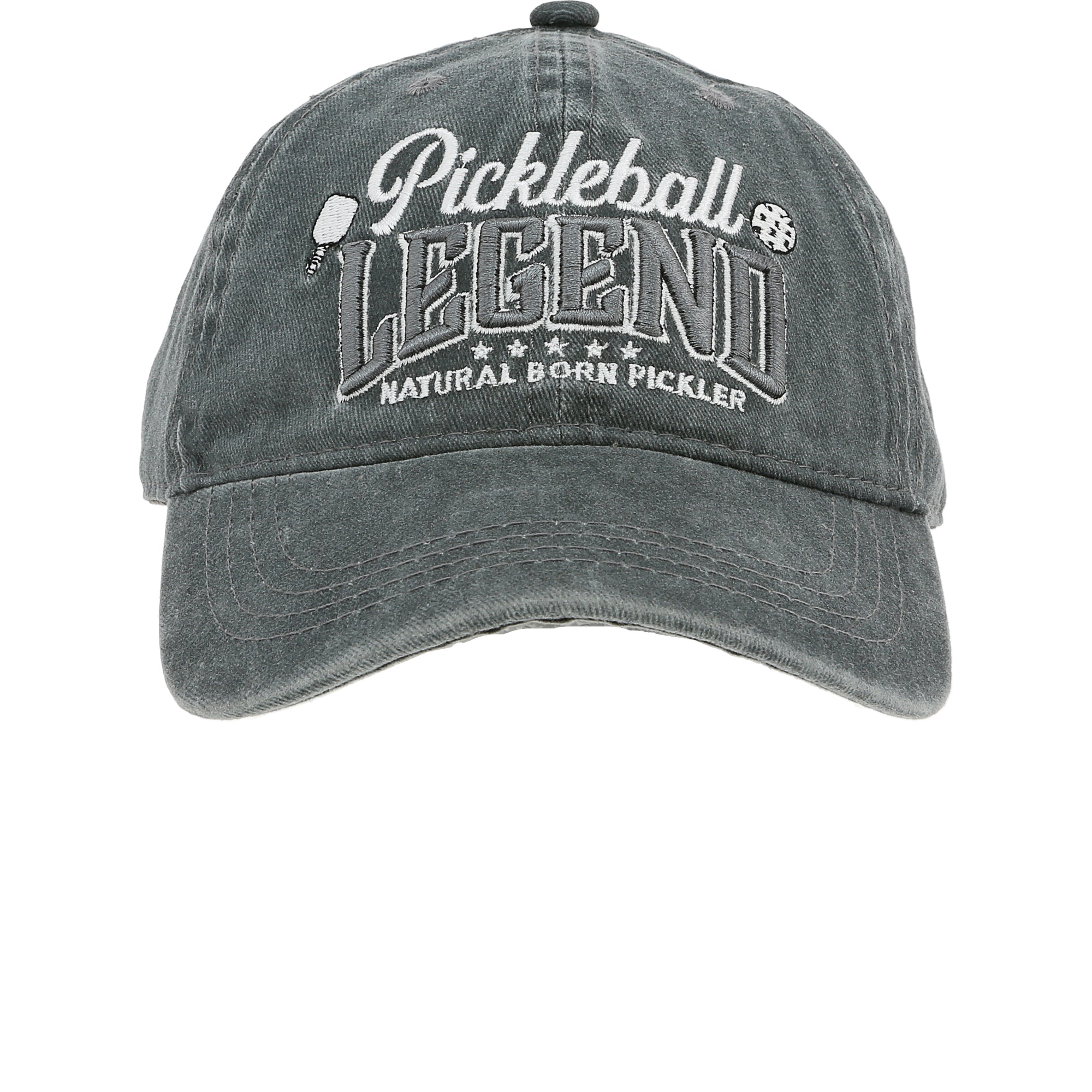 • IN-HOUSE DESIGN: The hat's front showcases the sentiment "Pickleball Legend," embroidered in white and gray with a pickleball graphic. The interior brim carries a screen-printed "limited edition" sentiment, adding an exclusive touch.