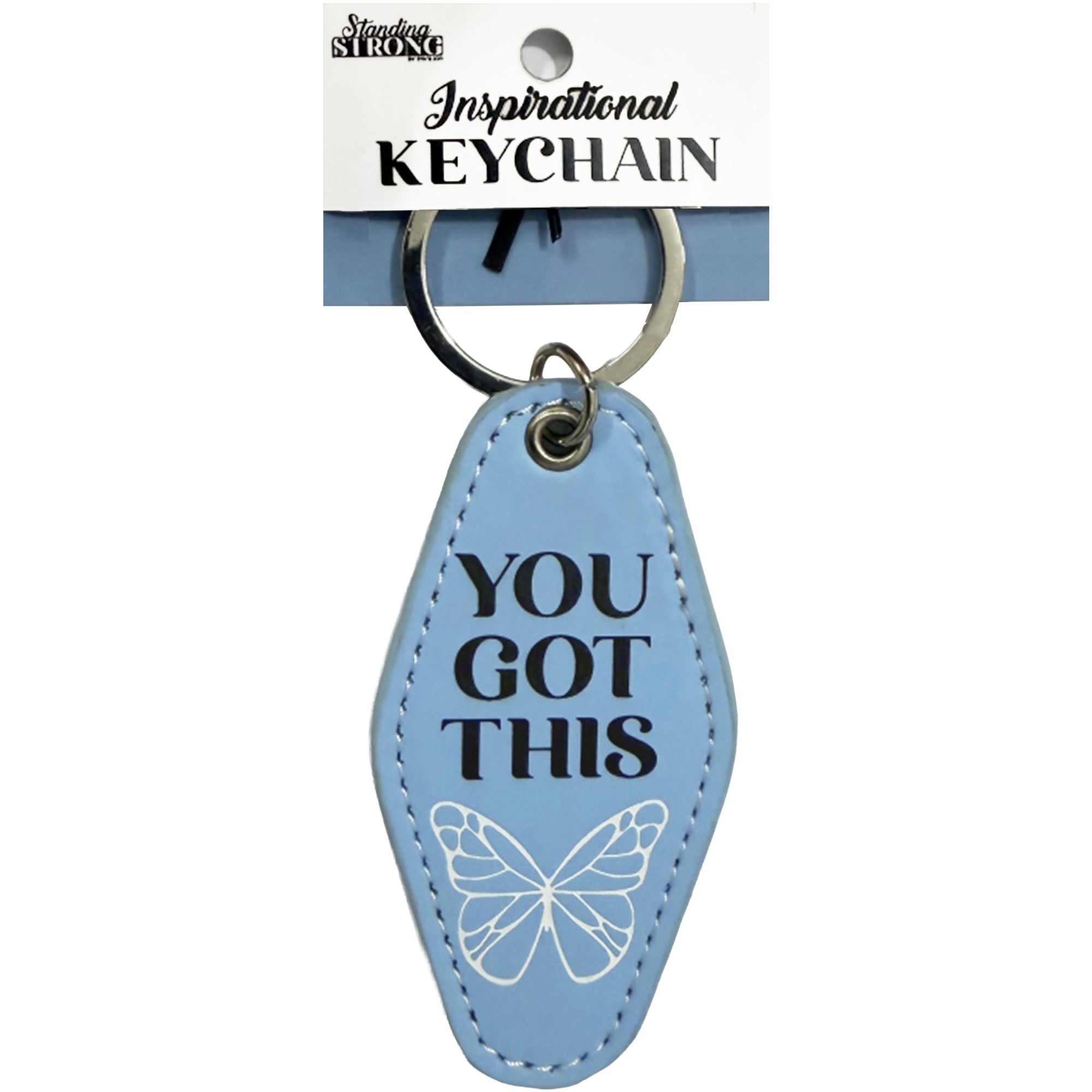 - IN-HOUSE DESIGN: Part of the Standing Strong collection by Pavilion, this sky-blue keychain features a bold “You Got This” sentiment on one side and an encouraging “Keep Showing Up” message on the reverse. Accented with a butterfly and delicate branch artwork, it symbolizes growth, hope, and perseverance. The clean typography and balanced layout give it a timeless, empowering look—perfect for anyone needing a gentle daily reminder to stay positive and persistent.