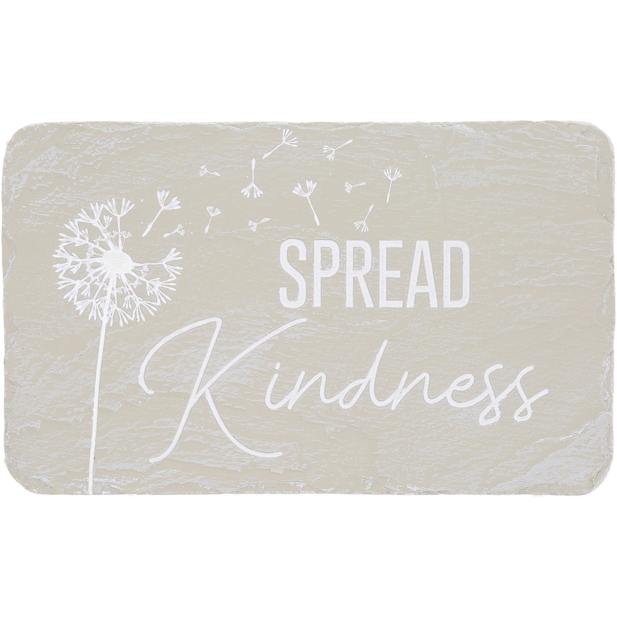 - IN-HOUSE DESIGN: This beige garden stone has a textured surface and rounded edges. It features a dandelion blowing seeds in the wind with the sentiment "Spread Kindness." This charming stone adds a touch of warmth and love to any outdoor or indoor space, serving as a meaningful reminder of the welcoming atmosphere within your home.