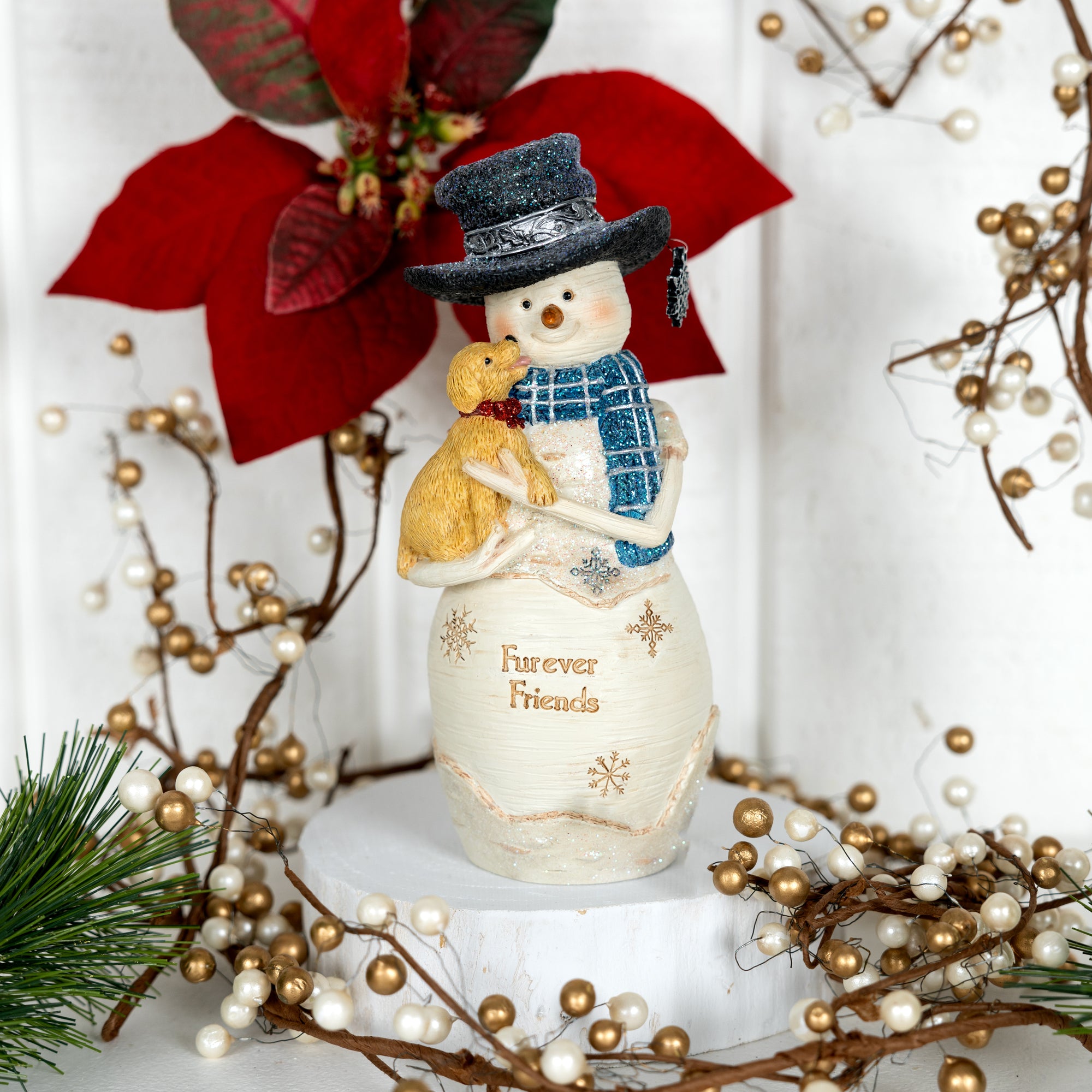 - PREMIUM QUALITY: This adorable 6" snowman and puppy figurine is crafted from durable polyresin with meticulous hand-painted details, adding a touch of warmth and whimsy to holiday decorations. Packaged in a festive gift box, it’s ready to be given as a thoughtful present. The quality design and construction ensure it will bring joy for many holiday seasons.