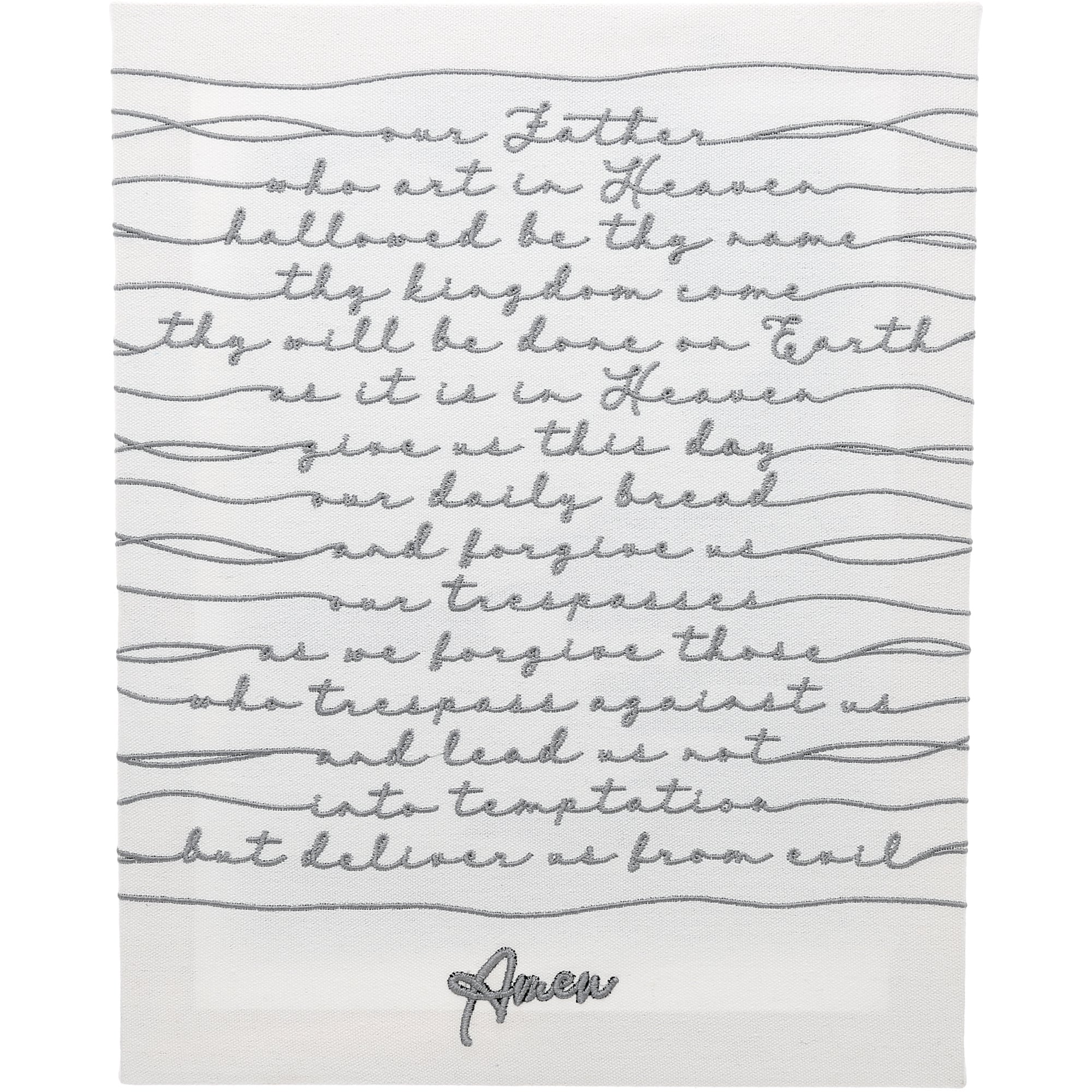 - IN-HOUSE DESIGN: The plaque combines gray waved threads and gray risen words "Our Father, Who Art In Heaven Hallowed Be Thy Name, Thy Kingdom Come, Thy Will Be Done On Earth As It Is In Heaven. Give Us This Day Our Daily Bread And Forgive Us Our Trespasses, As We Forgive Those Who Trespass Against Us, And Lead Us Not Into Temptation But Deliver Us From Evil. Amen," that wraps around the edges of the canvas.