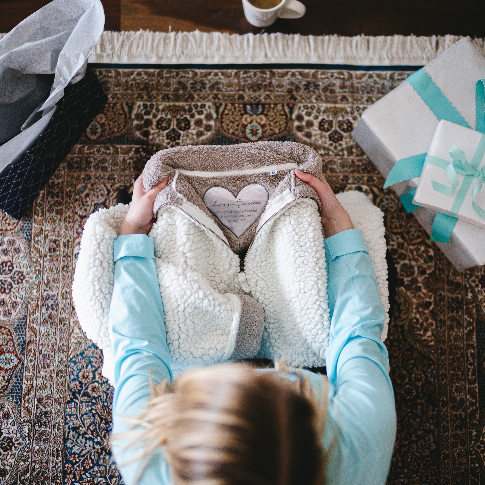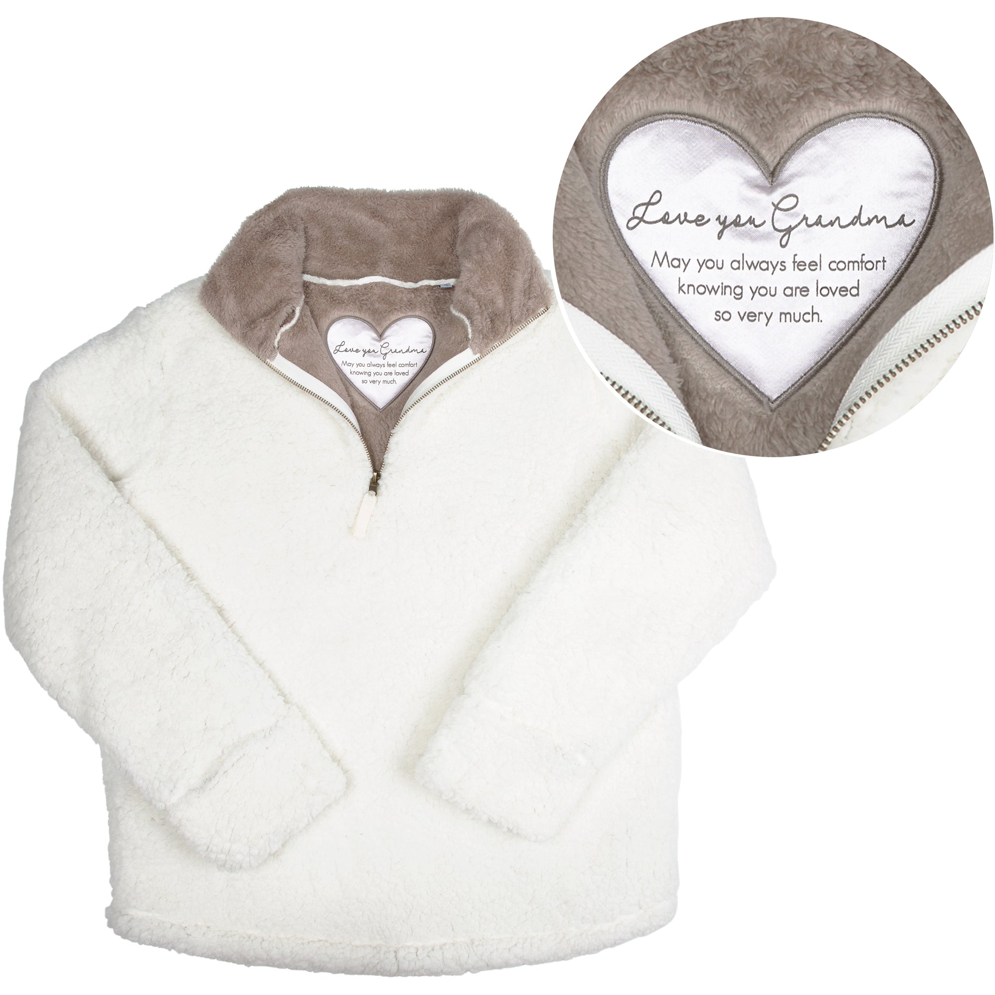 - IN-HOUSE DESIGN: "Love You Grandma; May You Always Feel Comfort Knowing You Are Loved So Very Much." text is printed onto the embroidered heart detail.