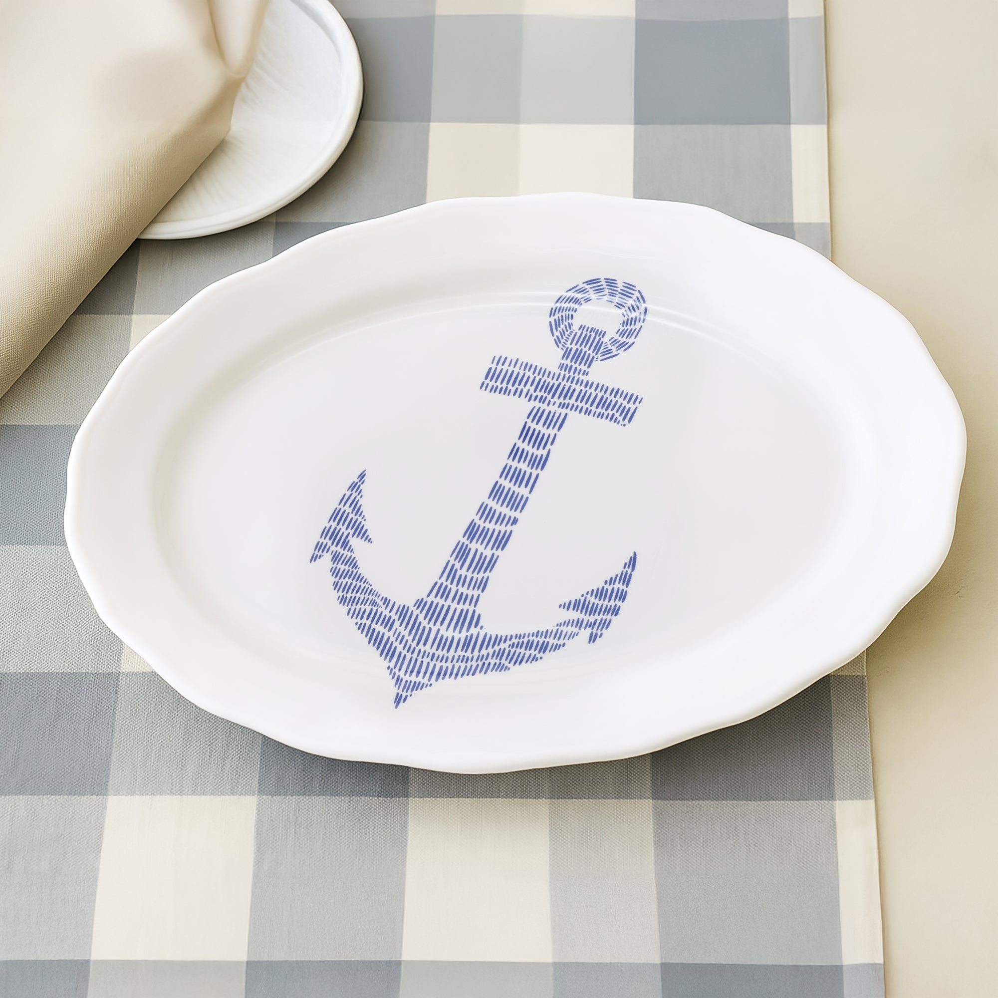 - IN-HOUSE DESIGN: This tray features a bold navy anchor graphic, bringing a classic nautical charm to your dining or entertaining experience. The simple yet eye-catching design is perfect for lake houses, boat outings, or coastal-inspired kitchens, adding a maritime touch to any space.