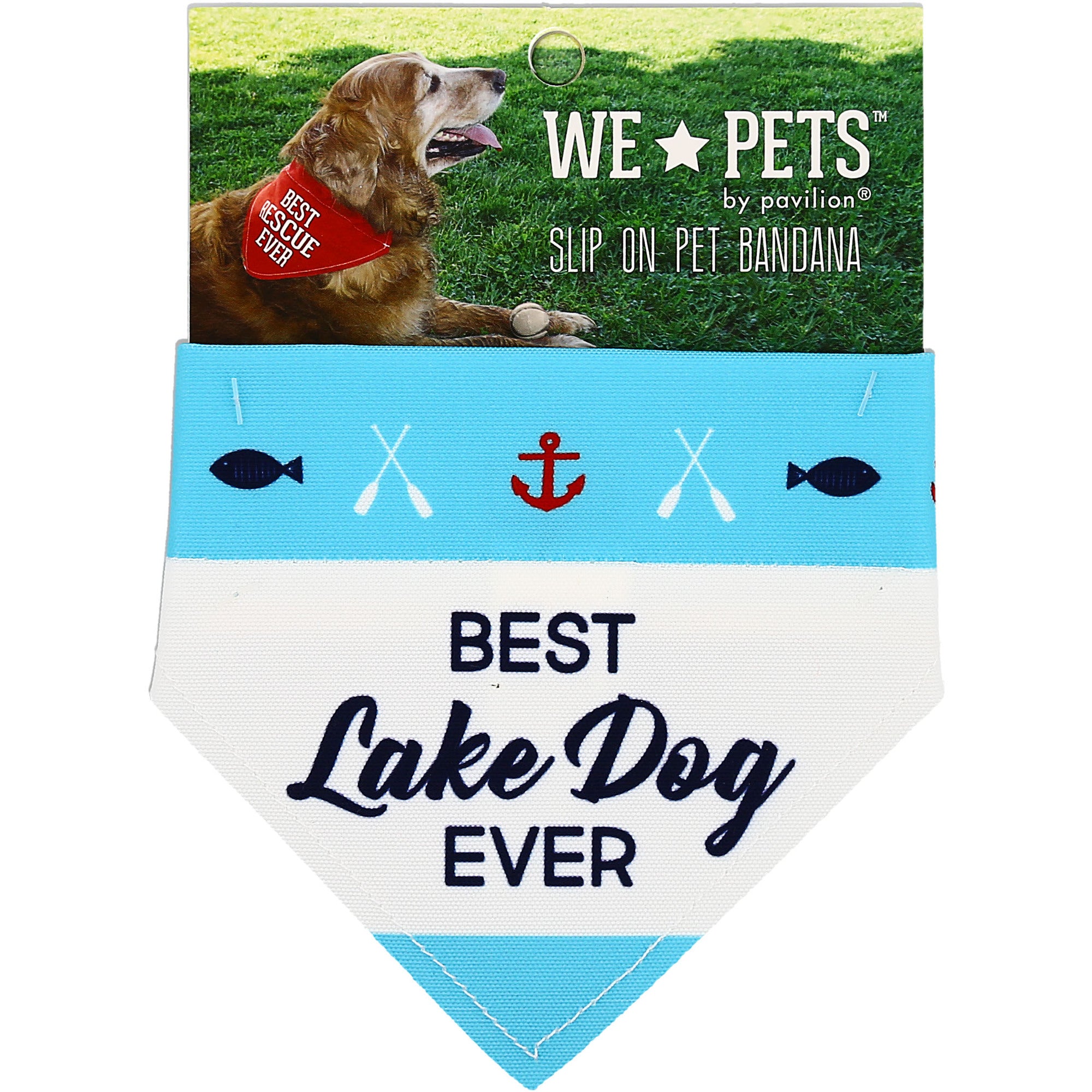 - IN-HOUSE DESIGN: "Best Lake Dog Ever" text and accompanying oar, fish, and bait icons are printed onto the front of the bandana.