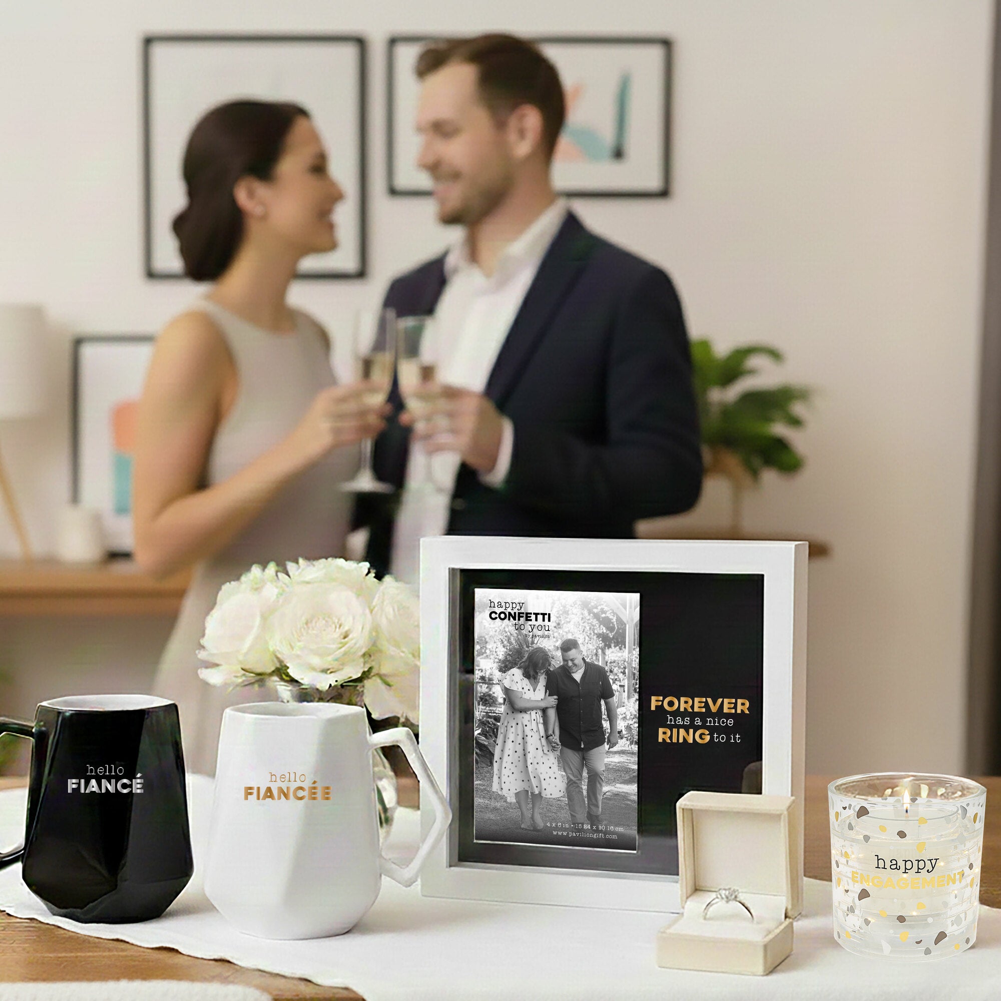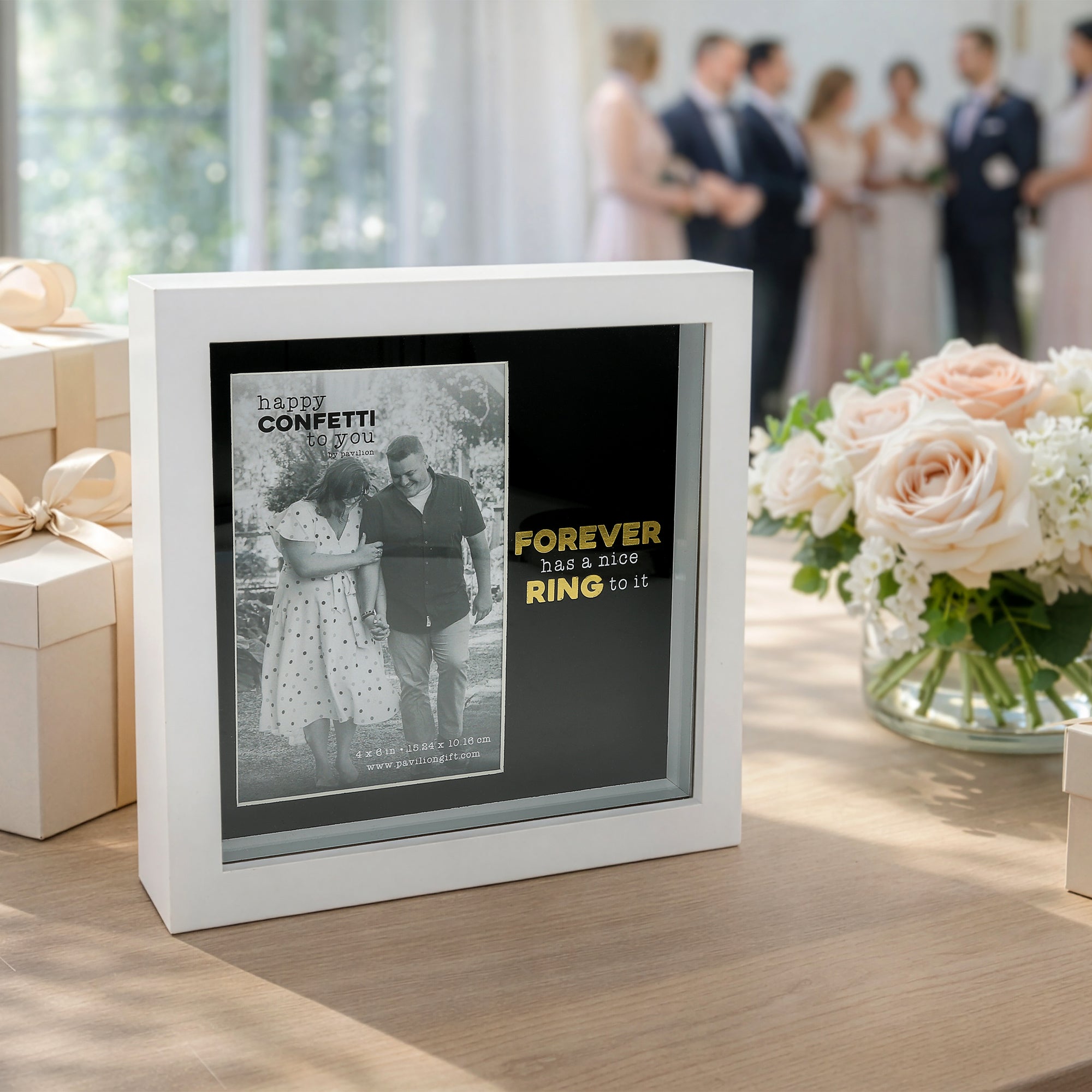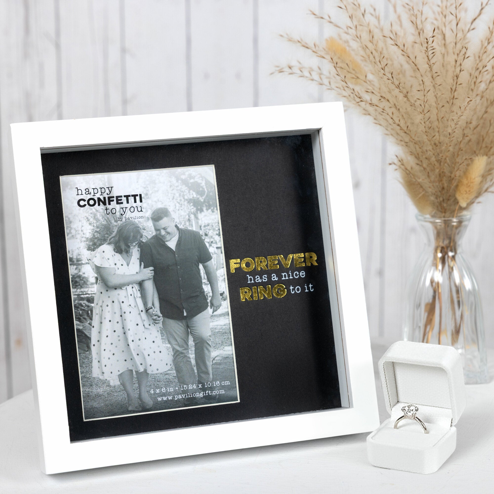 - IN-HOUSE DESIGN: The sentiment “Forever has a nice ring to it” is playfully printed in contrasting white and yellow text. The glass overlay paired with the mat’s embossed finish gives the piece a dimensional, upscale look that’s perfect for engagement photos or wedding celebrations.