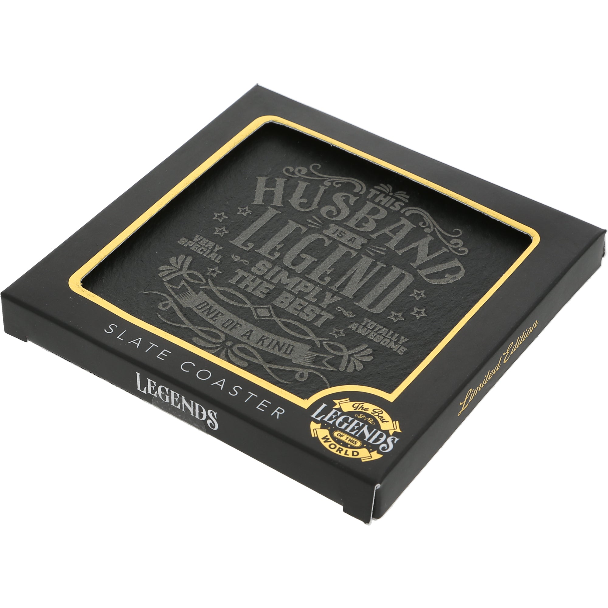 - PREMIUM QUALITY:** This 4" x 4" slate coaster features engraved detailing and foam feet for stability. Its durable slate design makes it both functional and stylish, with the sentiment "This Husband Is A Legend Very Special Simply The Best Totally Awesome One Of A Kind" deeply engraved for a lasting impression.