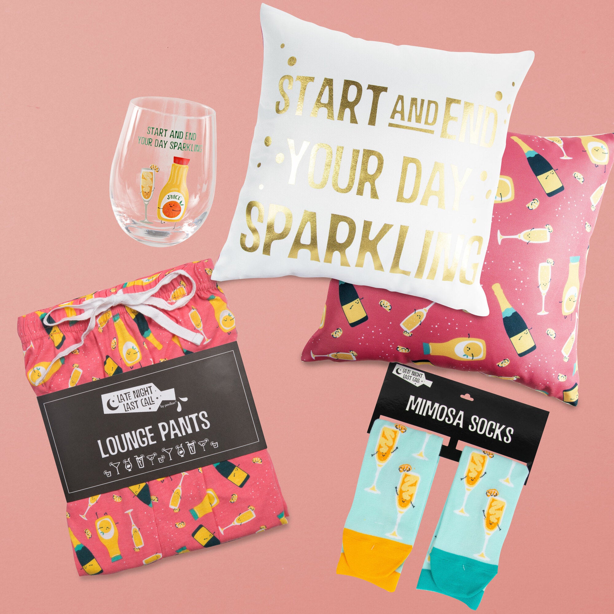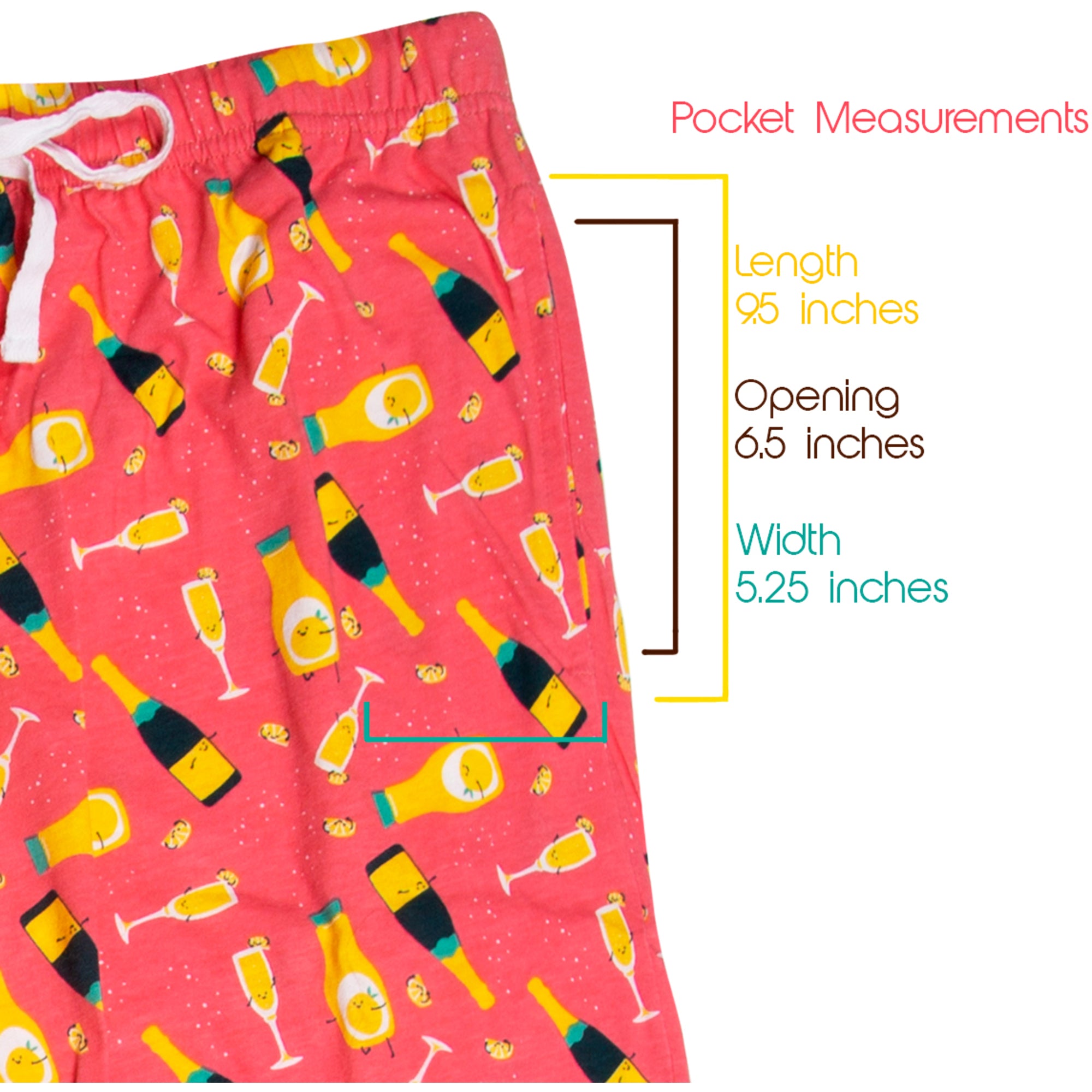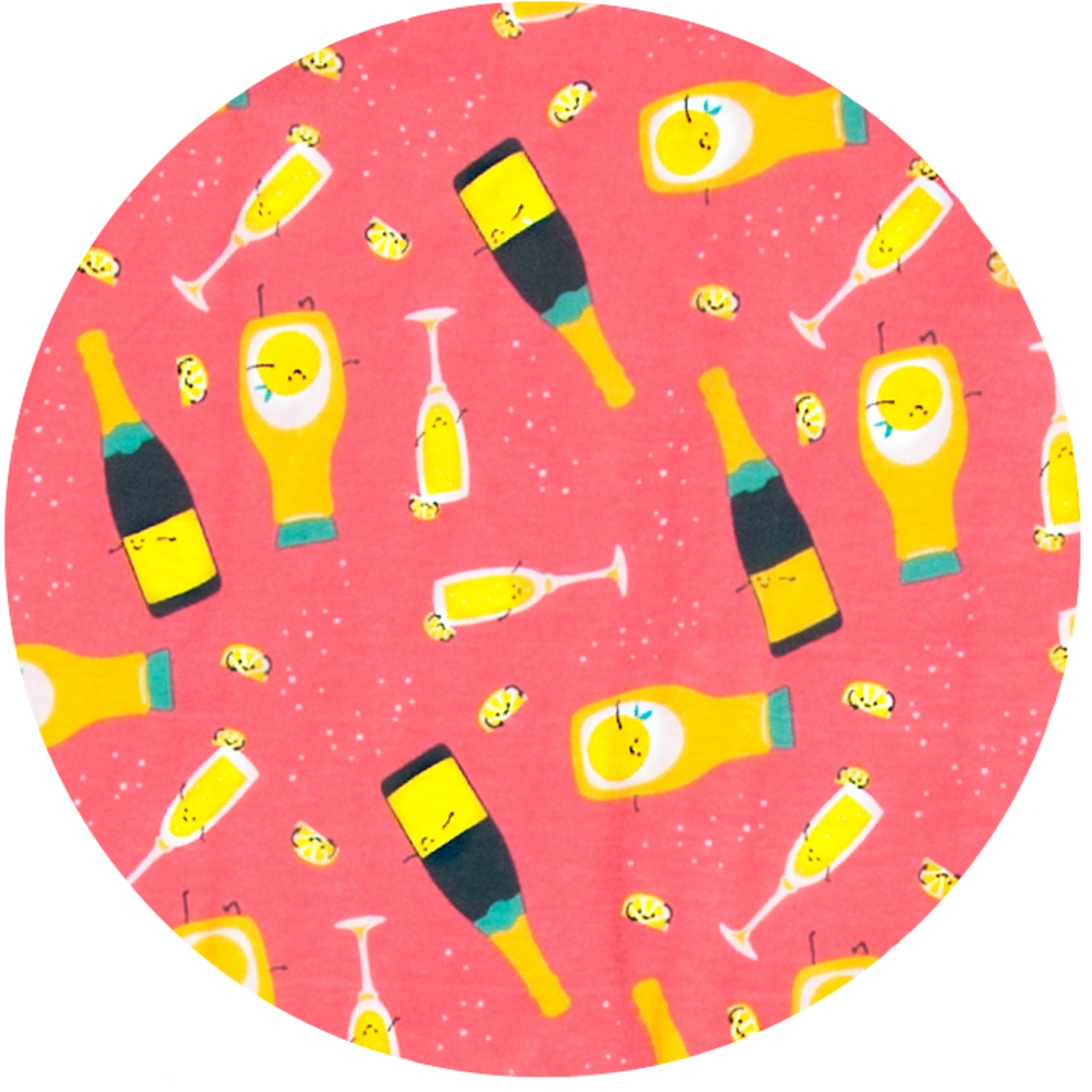 - IN-HOUSE DESIGN: Pattern features champagne bottles, orange juice, glasses.