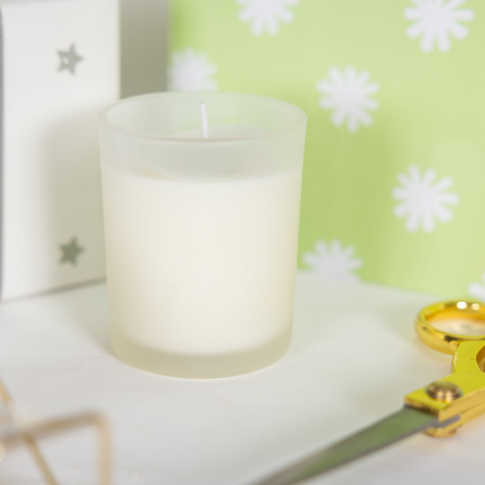 - PREMIUM QUALITY: This 2.75" wide x 3.5" tall frosted glass opaque vessel contains 5.5 oz of 100% floral tranquility-scented wax with a single lead and nickel-free cotton wick. The candle will burn for a total of 35-40 hours. The smooth bottom gently sits on any furniture surface. The metal lid features a silicone band around the interior for a snug fit; the dome-shaped string design moves freely when touched.