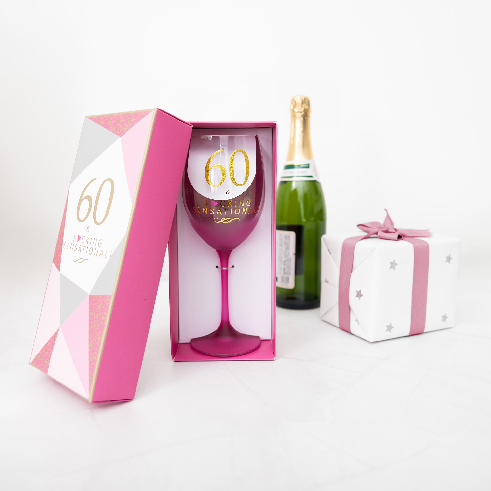 - IN-HOUSE DESIGN: Coming together with a matte pink bottom and stem that has an ombre fade into the top section of the glass with an accompanying "60 & Fucking Sensational!" sparkly metallic and electroplated gold sentiment with a pink heart accent instead of a "u" Great for holding red, white, or rose wines, including varieties of Merlot, Riesling, Chardonnay, Gewürztraminer, Sauvignon Blanc, Malbec, Zinfandel, Pinot Grigio, and more.