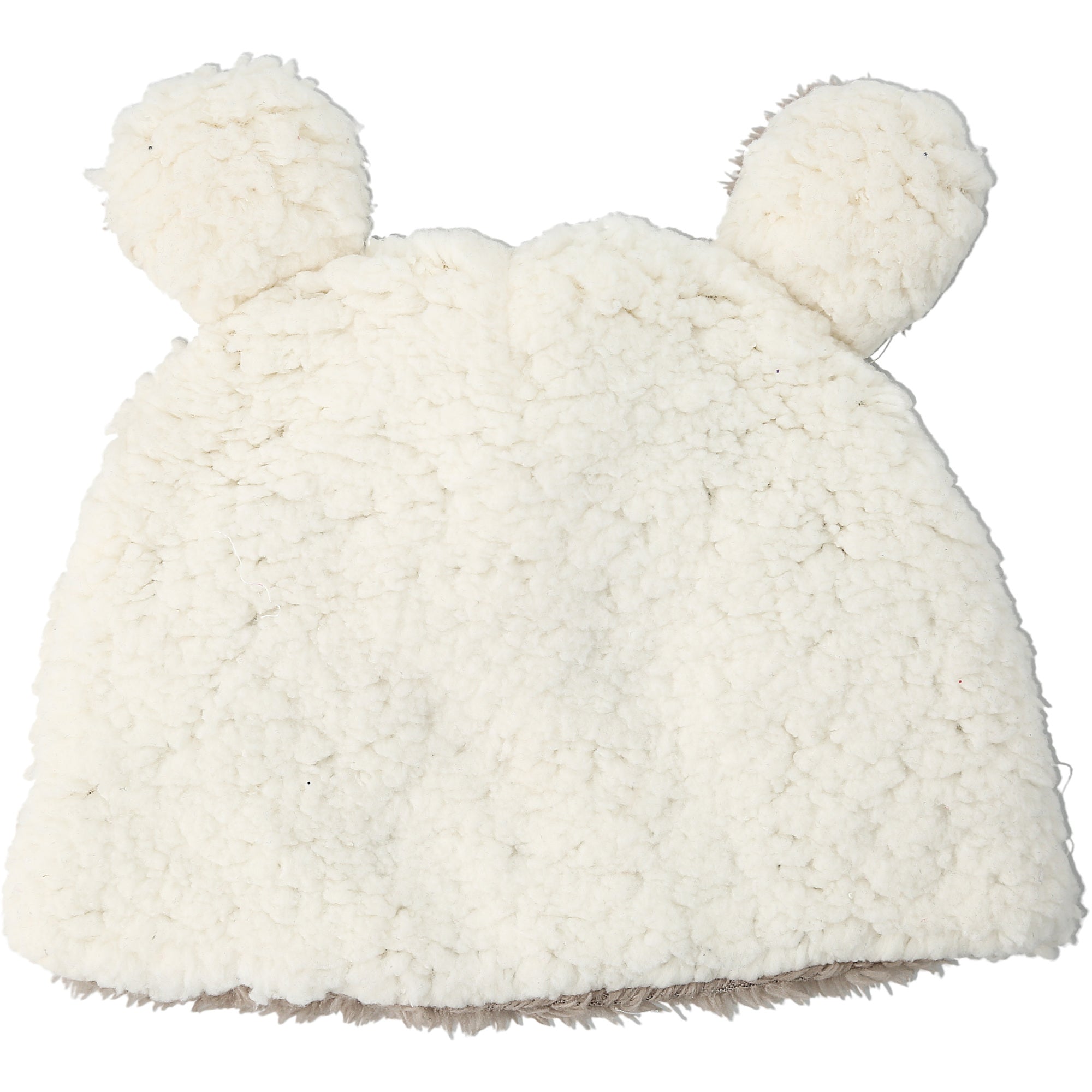 - PREMIUM QUALITY: This one-size-fits-most 6-12 month hat measures 18 inches in circumference or 9" long x 6" tall while laying flat. This fluffy, cozy, warm winter hat has a 100% polyester fleece lining and a white sherpa exterior. The 2.25" tall x 2" wide ears stick off the sides of the top of the hat.