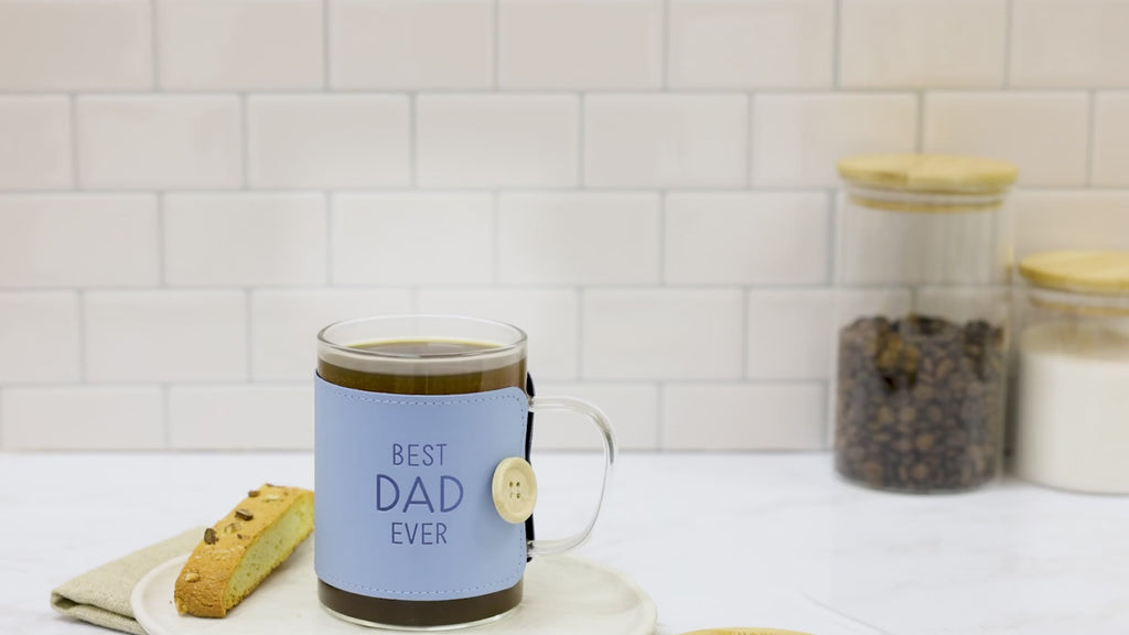 - IN-HOUSE DESIGN: Embrace the warmth of appreciation with this heartwarming drinkware adorned with a charming blue wrap. The wrap bears the loving sentiment "Best Dad Ever," exquisitely engraved, complemented by delicate blue stitching, a tan button, and a white elastic closure for a touch of elegance. Meanwhile, the coaster cap crafted from natural wood grain showcases a rounded "Share Kindness" text encircled by a circular line, radiating positivity with every sip.