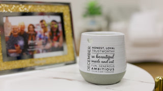 - IN-HOUSE DESIGN: Silver "December" sentiment lines the left side under the heart accompanied by black "Honest, Loyal, Trustworthy, So Beautiful Inside And Out, Fun, Generous, Ambitious, You Are A Gem: Turquoise" wording to the right, which is centered on the container. The heart inside is blue, and the wax reveals a flowy fabric-like blue image with "May All Your Wishes Come True" wording. The wax reveal begins to show after 10 minutes and is fully visible after 50 minutes of burn time. Overall burn time is 27-30 hours. Always remember to trim your wick down after each burn.