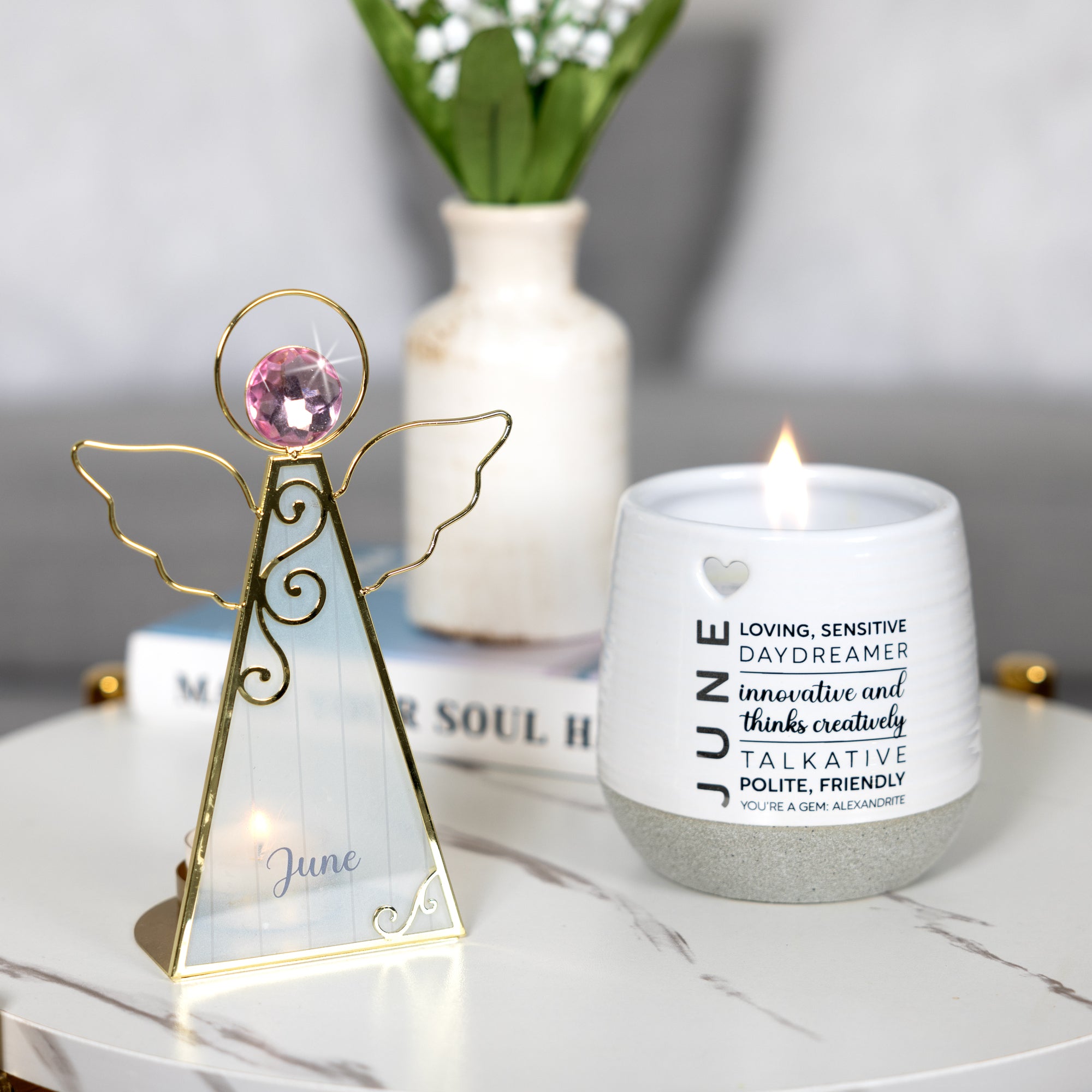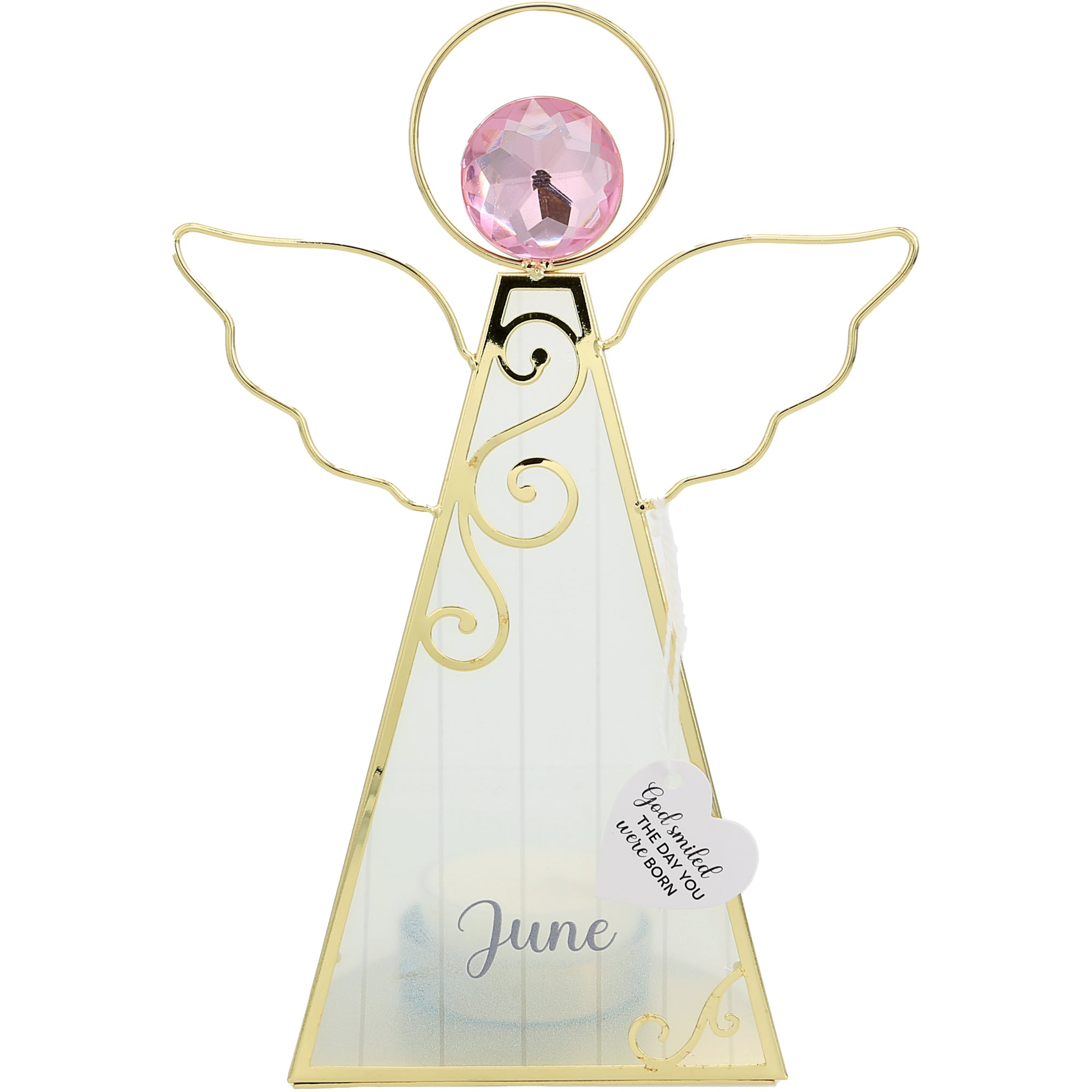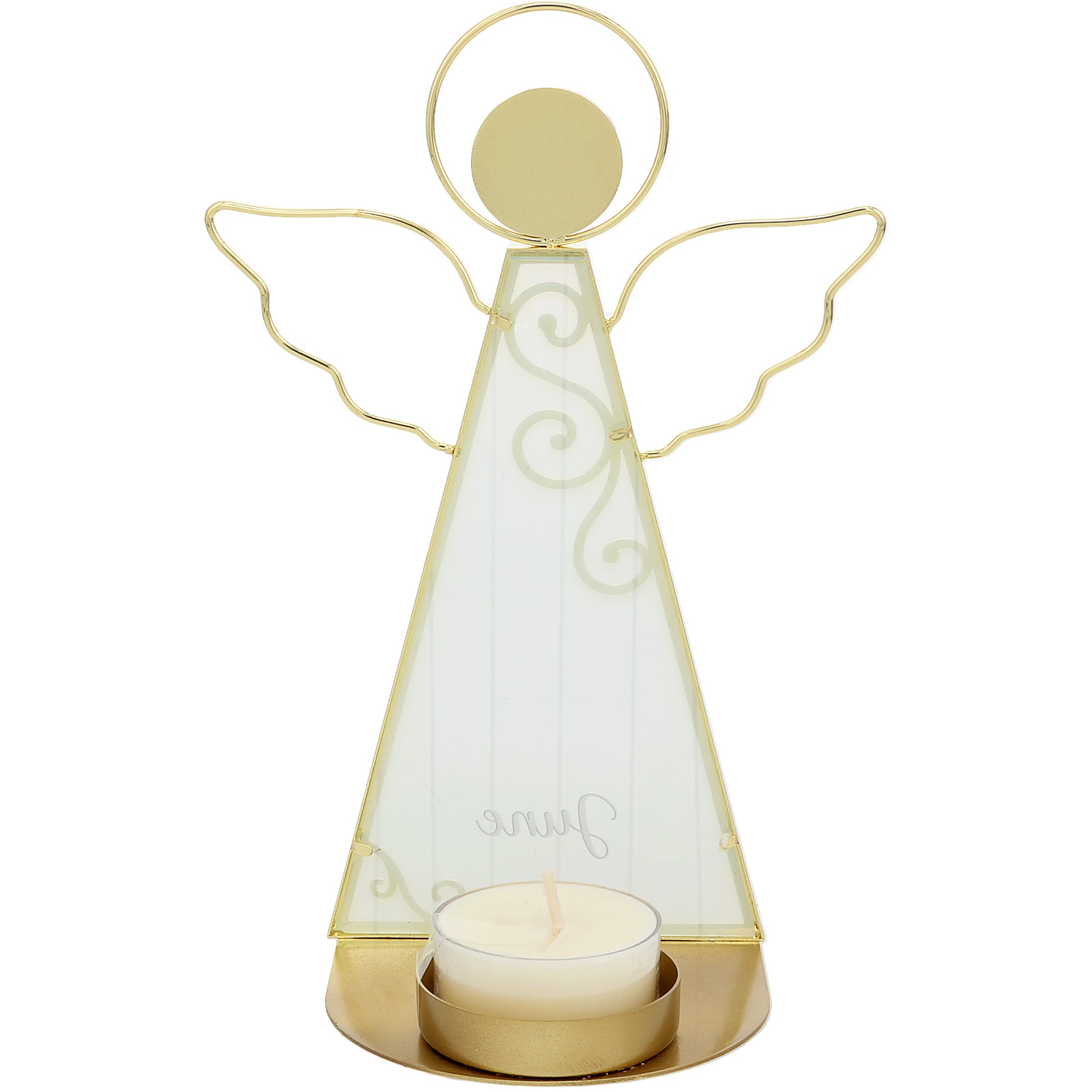 - PREMIUM QUALITY: This beautiful 6.5" angel tealight holder is crafted from sturdy metal and textured ribbed glass, enhanced with an alexandrite-inspired pink gem representing June and its zodiac signs (Gemini and Cancer). Its thoughtful design and durable build make it both a practical tealight holder and a cherished decorative piece. The elegant combination of materials ensures it stands out, adding warmth and beauty to any room when illuminated.