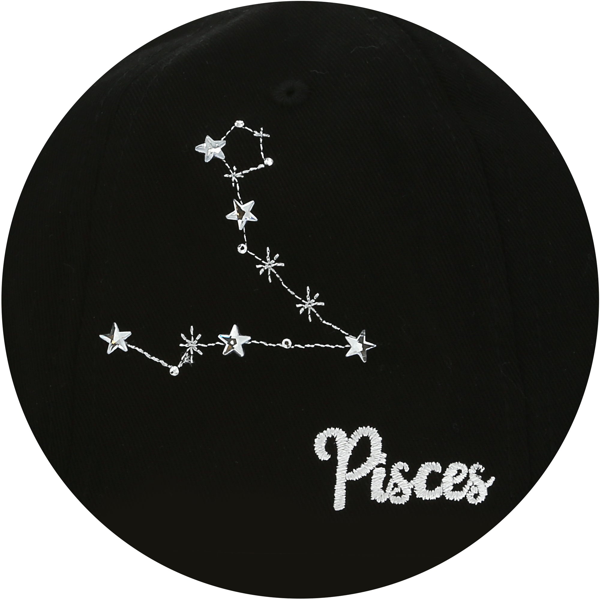 • IN-HOUSE DESIGN: The front of the black hat featured a white celestial birth sign embroidered in white. The right side of the hat features a white "Pisces" sentiment along with a zodiac constellation featuring stars and gem details also embroidered in white.