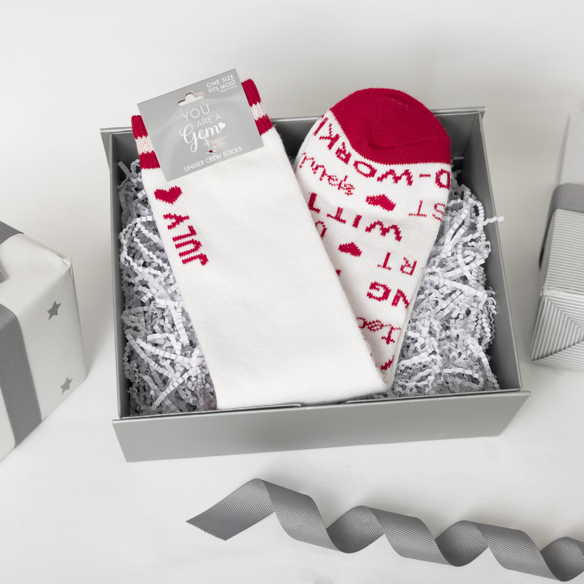 - IN-HOUSE DESIGN: The bold red "July" socks feature a word splash of traits such as "Fun," "Witty," "Honest," "Spirited," and "Hard-Working." These words are displayed in bright red text against the clean white background, representing the lively and energetic spirit of those born in July. The stylish design captures the essence of a July-born individual, making these socks both meaningful and eye-catching.