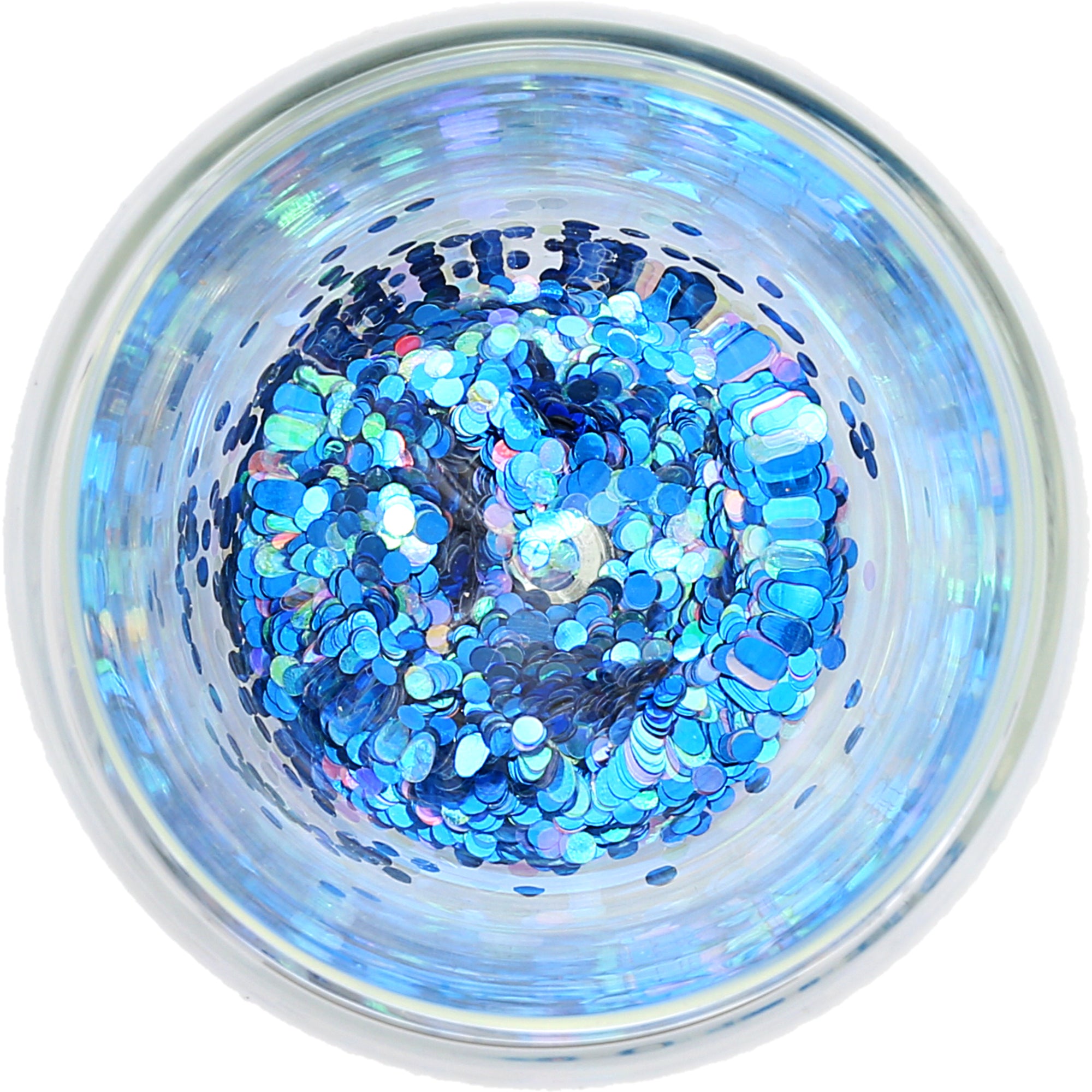 - PREMIUM QUALITY: This 14-oz double-walled drinkware is made from borosilicate glass. Blue and clear iridescent round confetti are freely moving between the walls.