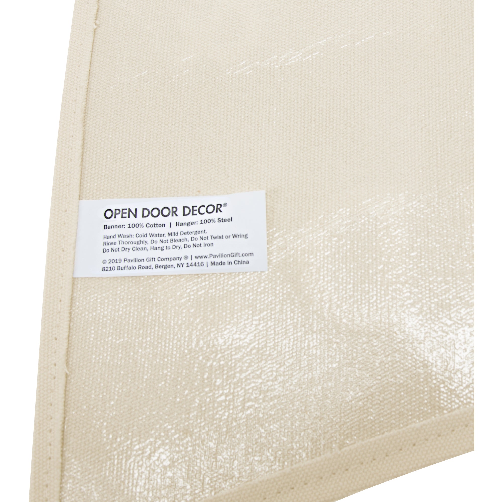 - CARE INSTRUCTIONS: Wipe clean with a damp cloth, if necessary. Metal hanger can be removed from banner.