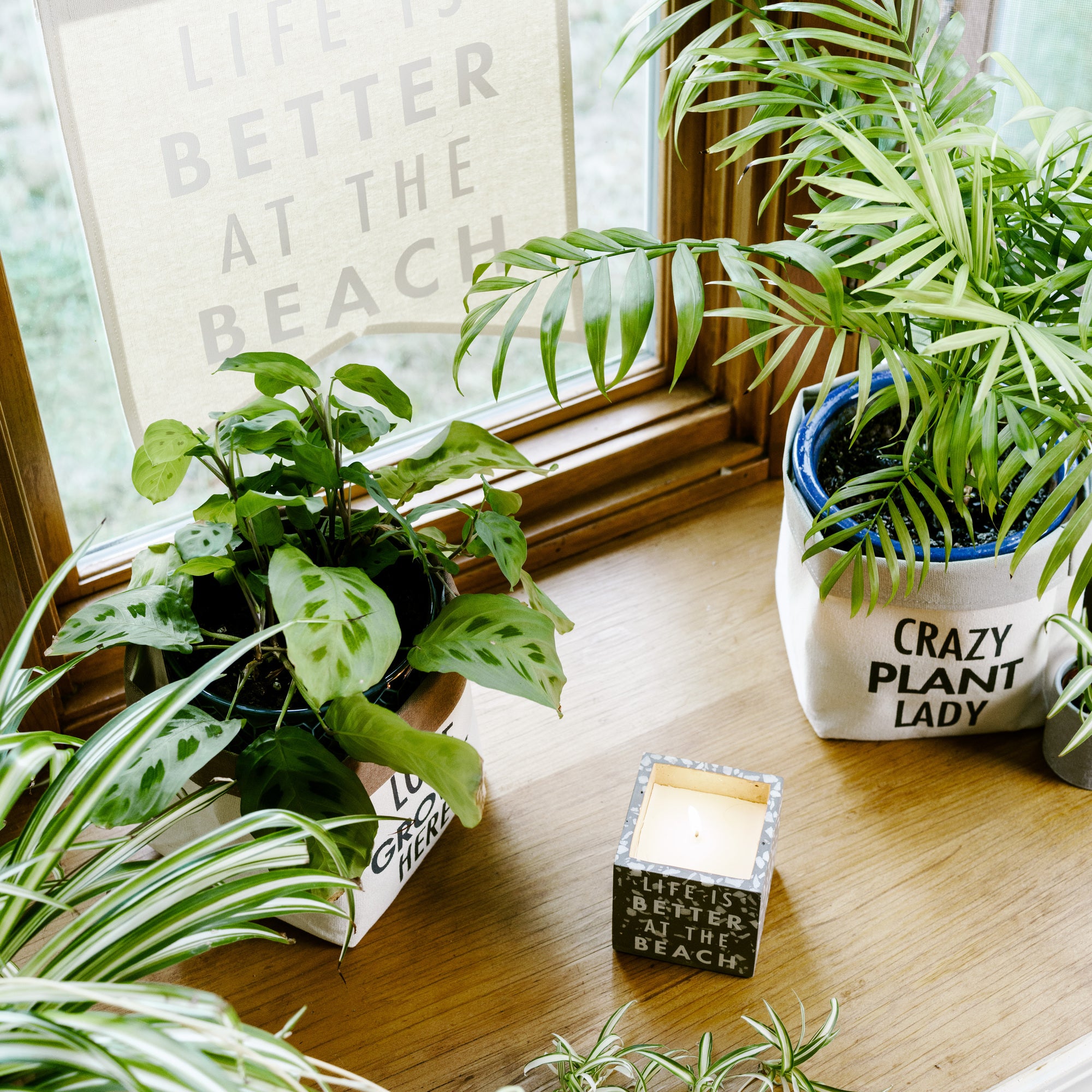 - IN-HOUSE DESIGN: "Life Is Better At The Beach" text is printed onto the front of the banner.