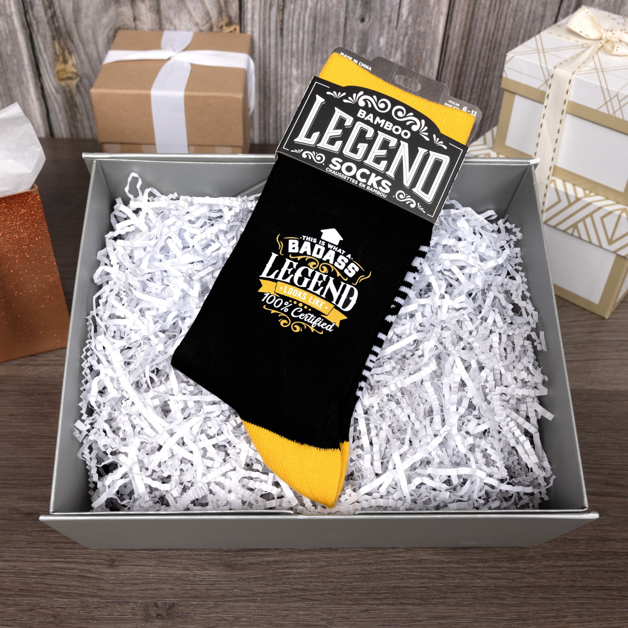 - IN-HOUSE DESIGN: The legendary graphic is intricately woven into the sock using high-quality stitching that prevents fading or cracking over time. The vibrant typography pops against the background, making a bold fashion statement.
