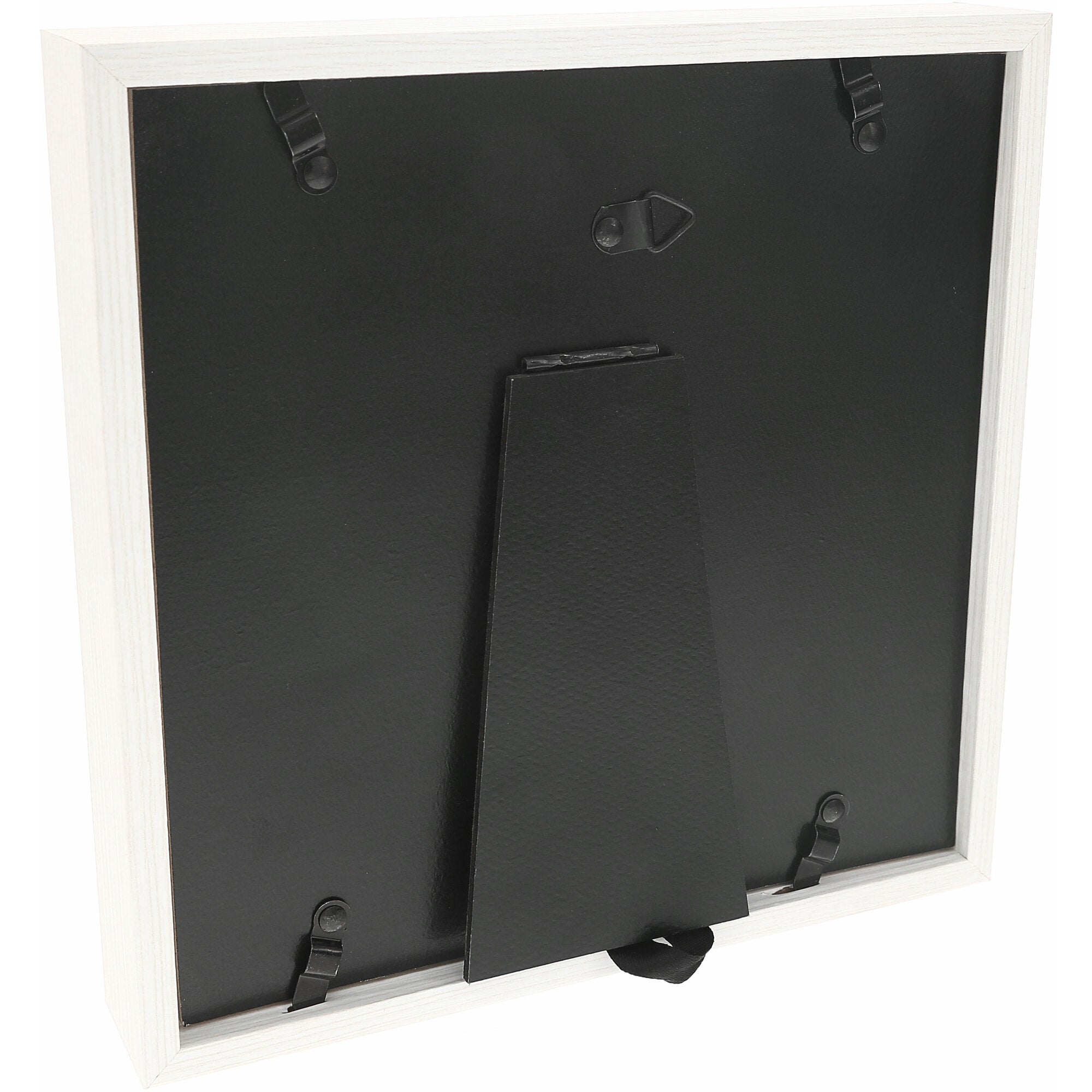 • PREMIUM QUALITY: This square white shadow box photo frame is made from MDF, glass, and mat board. Frame measures 7.5" x 1.5" x 7.5", holds a 4" x 6" horizontal treasured photo, and is packaged in a die-cut box.