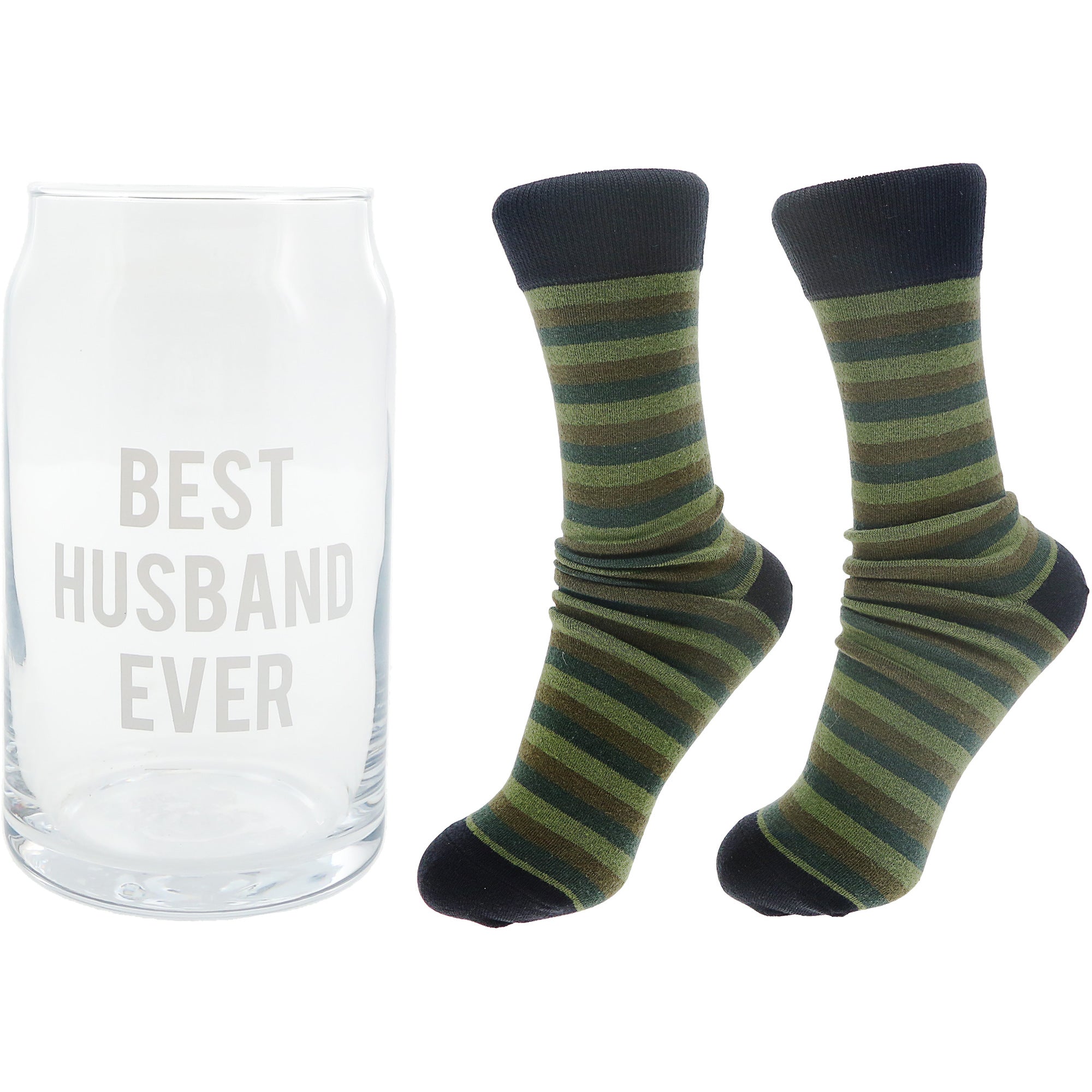 - IN-HOUSE DESIGN: The glass has a white "Best Husband Ever" glossy sentiment on the front center. The socks are assembled with a green, toe & ankle, and light and dark green striped pattern for a simplistic, timeless look.