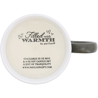 - PREMIUM QUALITY: 1.5" tall x 3.5" round gray speckled stoneware candle has a single 100% cotton lead and nickel-free wick with 4 oz of tranquility-scented soy wax. 11-12 hour burn time. The 5" long, 3" tall & 3.5" wide white matte exterior and gray glossy interior stoneware mug hold 11 oz of liquid.