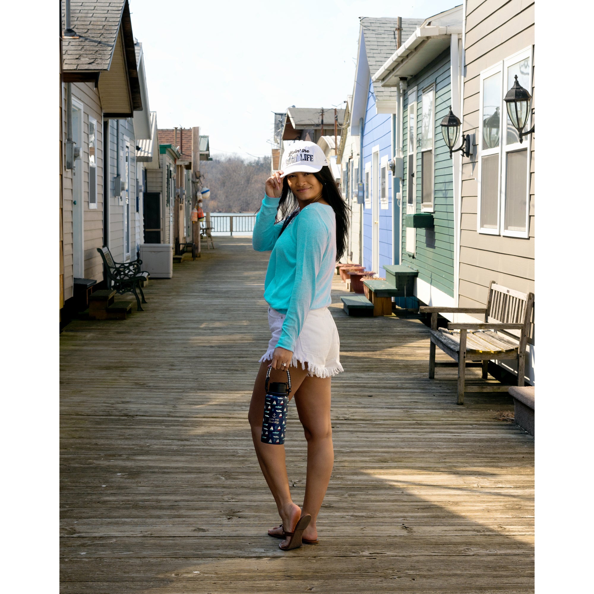 - IN-HOUSE DESIGN: Snap with an adjustable strap that can be tucked away into the backside hat. Features a "Boat Life" blue & white tie-dye sentiment sewn in with a frayed rustic look edging. "Livin' The" is embroidered above. In addition, a "WP" star-shaped logo is sewn into the side of the hat. Finally, a round outlined "Be Your Own Kind Of People" screen is printed on the hat's bottom brim.